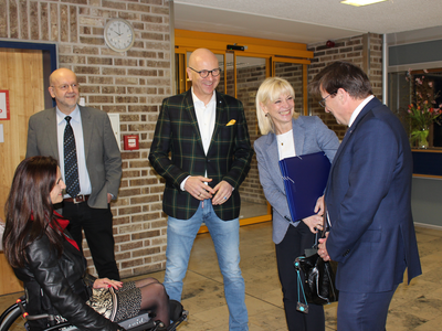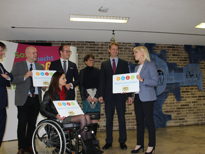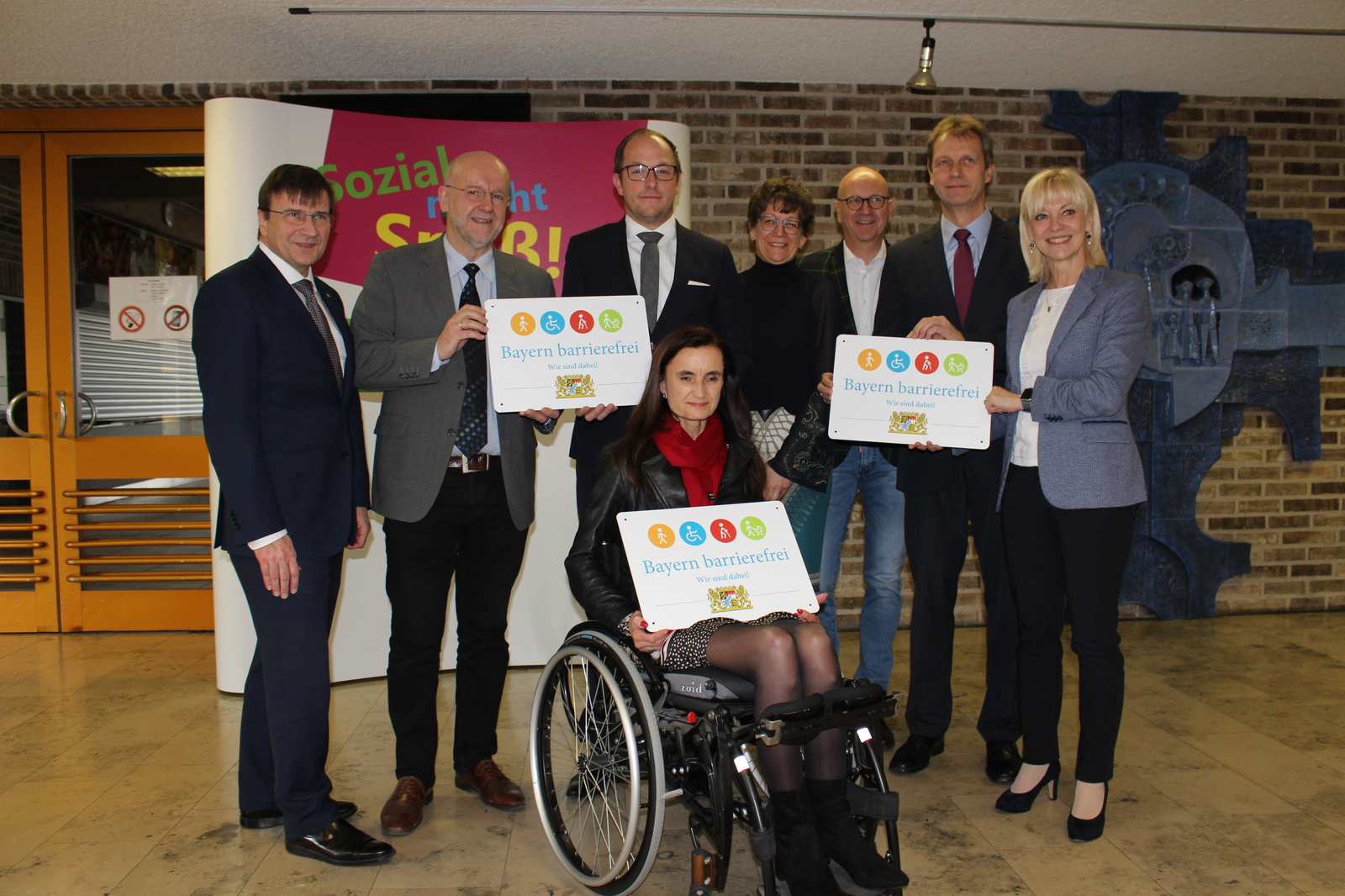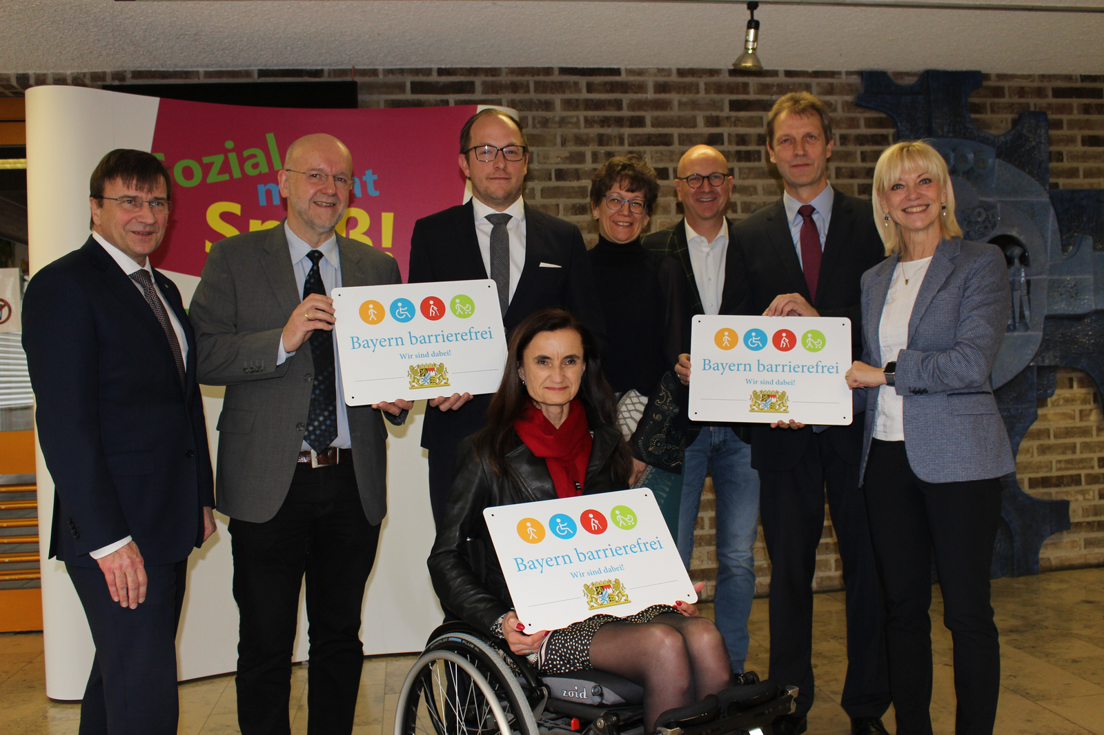 „Abensberg ist der bayerische Meister in Sachen Barrierefreiheit.“ Das sagte Sozialministerin Carolina Trautner am Dienstag, 25. Februar, beim Besuch in der niederbayerischen Stadt. Im dortigen Berufsbildungswerk St. Franziskus der Katholischen Jugendfürsorge überreichte Ministerin Trautner drei Signets „Bayern barrierefrei“ an das B.B.W. selbst, an die Steuerberatungsgesellschaft RNHS sowie und an das Ingenieurbüro Varoplan. Mit Blick auf die vielen, bisher vergebenen Signets „Bayern barrierefrei“ in Abensberg lobte sie die „Hauptstadt der Barrierefreiheit“ und sprach ihr herzliches Dankeschön aus.