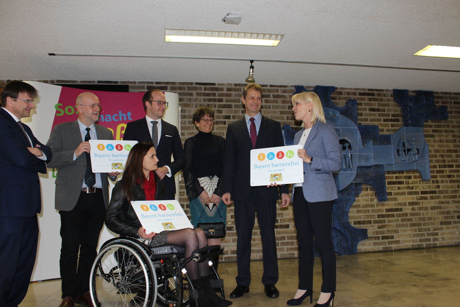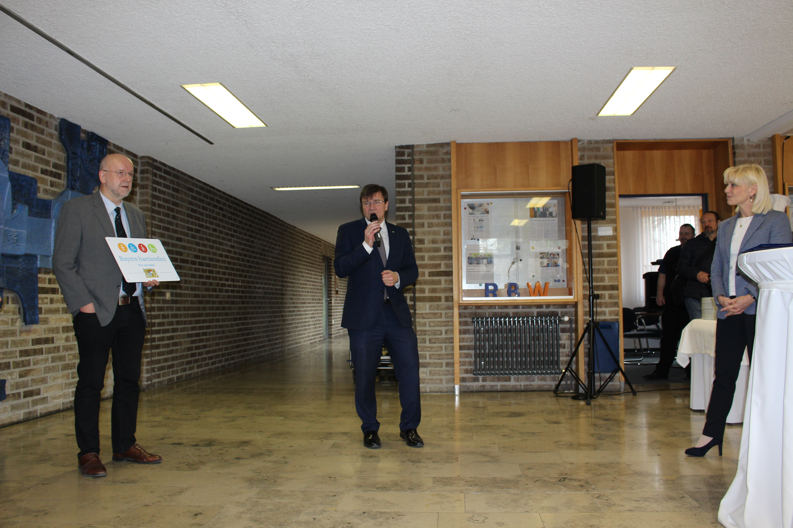 Die Altstadt von Abensberg war eine der ersten in Niederbayern, die nahezu komplett barrierefrei umgestaltet worden ist. Auch der Bahnhof und alle Schulen sind barrierefrei zugänglich. Und 2016 wurde in Abensberg der Herzogskasten, der das Stadtmuseum beherbergt, barrierefrei. Damals übergab Ministerialdirektor Michael Höhenberger die Auszeichnung. Kein Jahr später war Höhenberger wieder in Abensberg - insgesamt 19 Signets wurden vergeben und Höhenberger bezeichnete Abensberg als „Musterstadt der Barrierefreiheit“ und „Vorbild für Niederbayern“. Sehr zur Freude des 1. Bürgermeisters Dr. Uwe Brandl, der die Sozialministerin gemeinsam mit den Verantwortlichen des Berufsbildungswerks herzlich begrüßte. Maßgeblich an den Auszeichnungen beteiligt war Abensbergs Behindertenbeauftragte und Stadträtin Marion Huber-Schallner, die nun auch die drei weiteren Gebäude und Einrichtungen an die Vorgaben der Barrierefreiheit herangeführt hat. In ihrer Rede betonte Frau Huber-Schallner die besondere Freude darüber, dass diesmal drei Arbeitgeber das Signet erhalten. Auch in ihrer Funktion als Inklusionsbotschafterin der Bundesagentur für Arbeit wisse sie, wie wertvoll für Menschen mit Behinderung die Teilhabe am Arbeitsmarkt sei, denn Menschen mit Behinderung wollen nicht bemitleidet oder bevormundet werden, sondern respektiert und akzeptiert, selbstbestimmt ihr Leben gestalten.