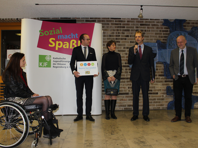 Diese überregionale Einrichtung in der beruflichen Rehabilitation und Integration wird von der Katholischen Jugendfürsorge der Diözese Regensburg getragen, Gesamtleiter ist Walter Krug. Das große Hauptgebäude vor den Toren der Stadt Abensberg verfügt über einen behindertengerechten Haupteingang mit automatischen Türen, alle Innenräume sind barrierefrei und auch per Aufzug erreichbar, es gibt große Bewegungsflächen und Farben als Leitsystem im Haus. Behindertengerechte Parkplätze und Toiletten, eine in einfacher Sprache verfasste Hausordnung oder Details wie die Unterfahrbarkeit der Tische sind Ecksteine der Auszeichnung. Krug dankte insbesondere Stadträtin Huber-Schallner und seiner Mitarbeiterin Silvia Haumer, die die Auszeichnung vorangetrieben hätten.
