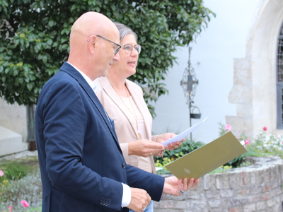 Da die Ehrung aufgrund der Corona-Pandemie nicht wie sonst in einer Gaststätte, sondern rein formell im Kreuzgang stattfand, gab es als Besonderheit für jeden einen 10 Euro-Bewirtungsgutschein.