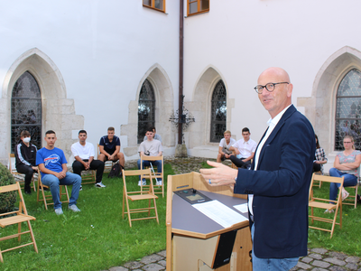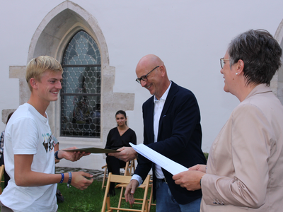 1. Bürgermeister Dr. Uwe Brandl lobte die Abschlussklässlerinnen und Abschlussklässler: „In einem solchen Jahr, das von Distanzunterricht geprägt war, solche Leistungen zu bringen, ist absolut stark. Ich gratuliere euch herzlich und wir als Stadt sind sehr stolz, dass wir heuer 45 Einladungen versenden konnten.“ Bildungsreferentin Kellner schloss sich dem Lob an. In ihrer kurzen Rede machte sie deutlich, dass Bildung nicht alleine die Anhäufung von Wissen sei: „Bildung ist der Schlüssel zur eigenen Entwicklung und die beste Investition für die eigene Zukunft.“ Anschließend übergaben sie und Dr. Brandl den Schulbesten die Urkunden inklusive Gutscheinen – und das recht flott, denn einige der geladenen Gäste drängte es zum Fußballspiel. Natascha Kästner von der Stadtverwaltung Abensberg organisierte die Schulbestenehrung und schickt die Urkunden allen, die nicht anwesend sein konnten, per Post zu.