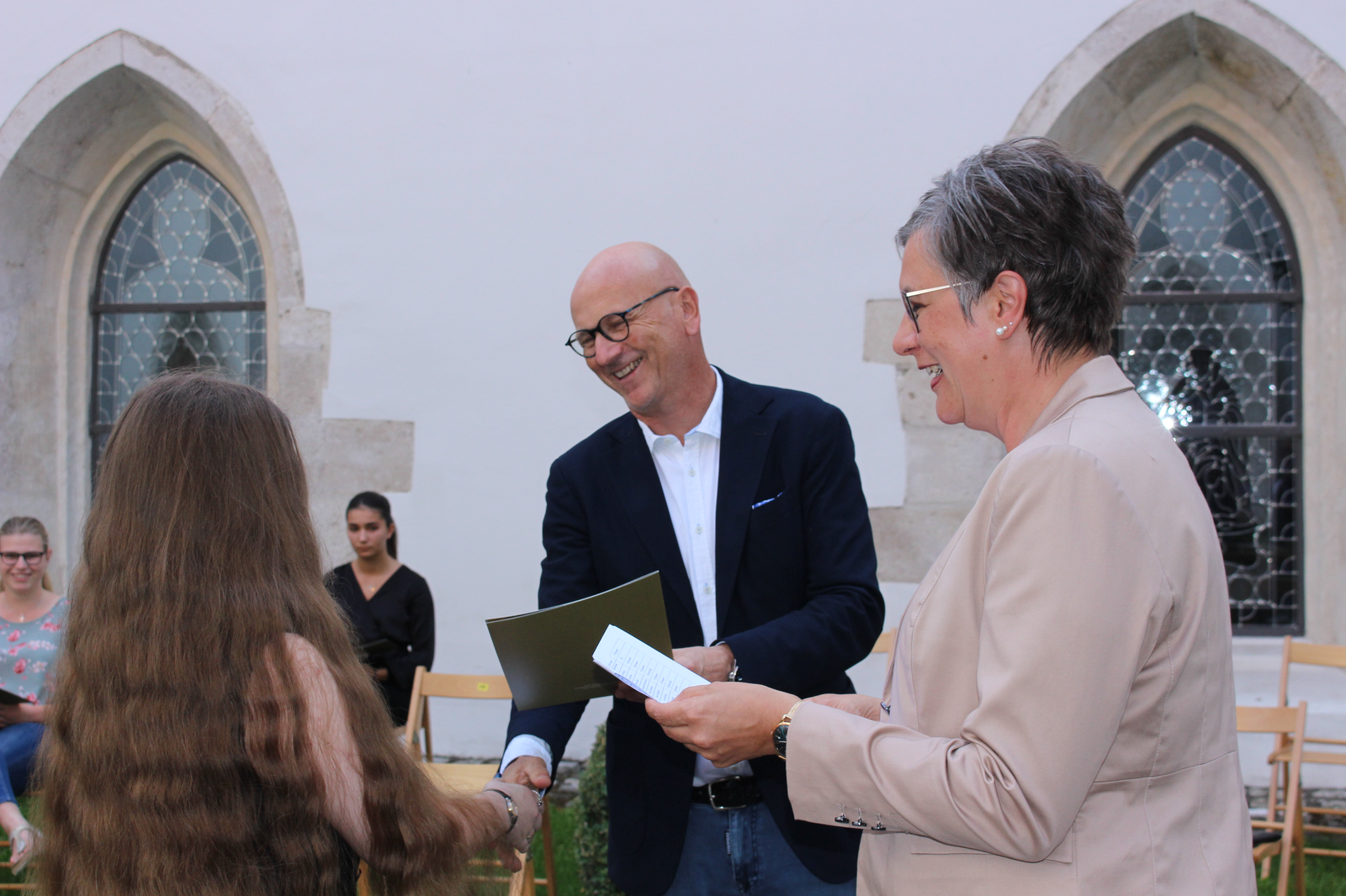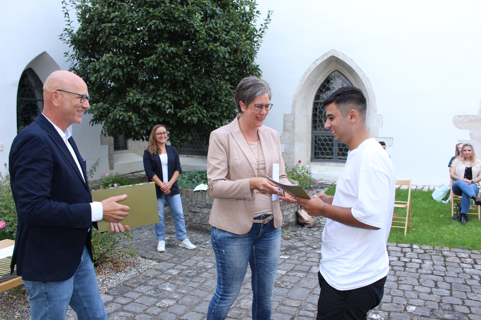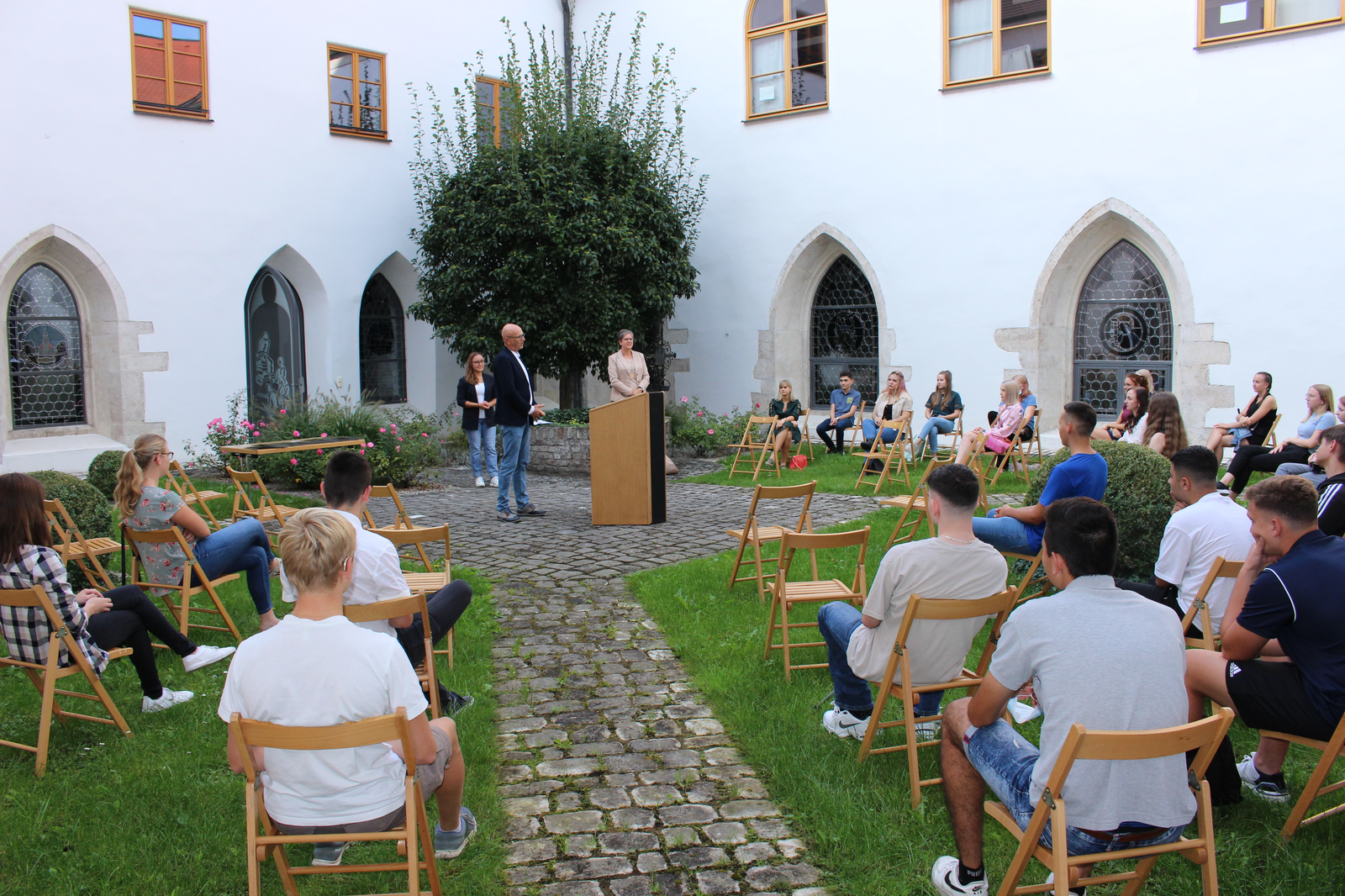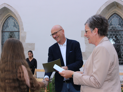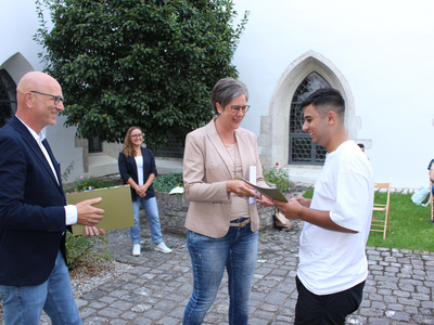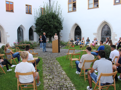 Wie seit vielen Jahren üblich, hat die Stadt Abensberg auch dieses Jahr wieder die Abschlusschülerinnen und -schüler aus Abensberg mit einem Notendurchschnitt bis 1,99 gesondert geehrt. Entscheidend ist dabei, dass die Schülerinnen und Schüler in Abensberg wohnhaft sind und ein entsprechendes Abschlusszeugnis vorweisen können. Zur jährlichen Schulbestenehrung der Stadt kamen 1. Bürgermeister Dr. Uwe Brandl und Abensbergs Bildungsreferentin Dagmar Kellner Mitte September in den Innenhof des Kreuzgangs, um den Abschlussschülerinnen und -schülern für ihre besonderen Leistungen im Schuljahr 2020/2021 zu gratulieren und Urkunden der Stadt mit Abensberger Einkaufsgutscheinen im Wert von 20 Euro zu überreichen.