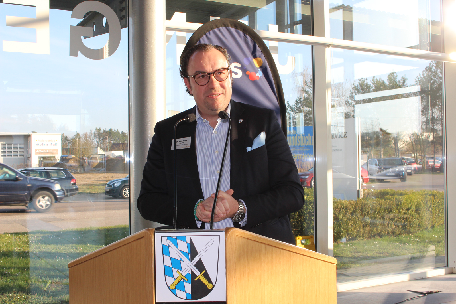 Zuvor aber begrüßte auch Hausherr Florian Hofmann, der die Geschicke von Hofmann Automobile von Walter Hofmann übernommen hat, die Gäste. Er freute sich über viele optimistische Gesichter, wo doch „so viel Negatives berichtet“ werde. Auch seiner Branche sei frühzeitig der Untergang vorher gesagt worden: „Aber die Menschen wollen online kein Auto kaufen. Und wir verstehen etwas davon.“ Der Unternehmer-Empfang sei ihm sehr wertvoll: „Wir richten dieses Treffen immer gerne mit aus.“