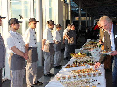 Nach dem Vortrag wurde das Buffet des Berufsbildungswerks eröffnet und die Gäste genossen den zwanglosen Austausch.
