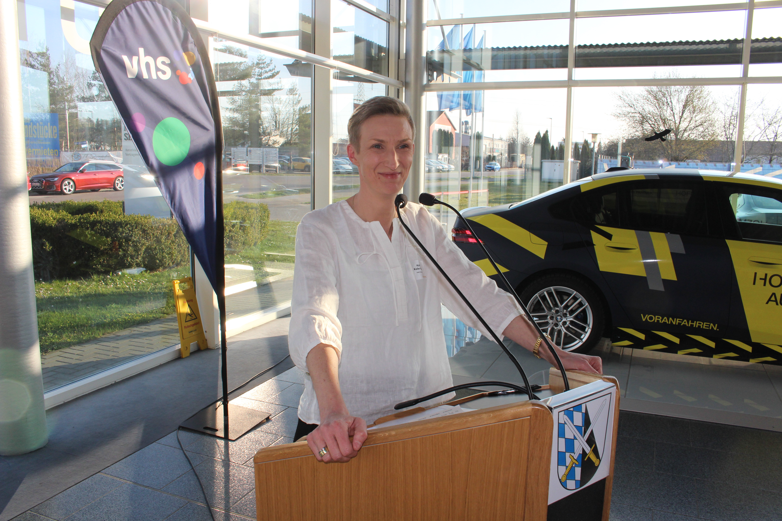 Vor rund 100 Gästen eröffnete Amtsleiterin Koller-Ferch die Veranstaltung mit dem Dank an Walter und Florian Hofmann und den Leiter des Abensberger Autohauses, Dominik Bergstein. Dass auch neue Gesichter unter den Gästen waren, freute sie sehr. Das Thema des Abends: „Künstliche Intelligenz im ethischen Spannungsfeld: zwischen technischer Machbarkeit und ethischer Vertretbarkeit.“ Dazu sprach Dr. Laura Crompton, Postdoktorandin der Universität Wien und KI-Ethik-Expertin – mit leichter Verspätung, da sie mit der Bahn anreiste. Um die Gäste nicht allzu lange ausharren zu lassen, straffte sie ihren Vortrag.