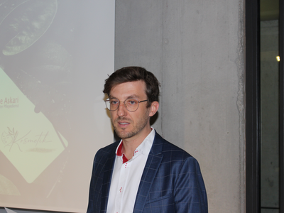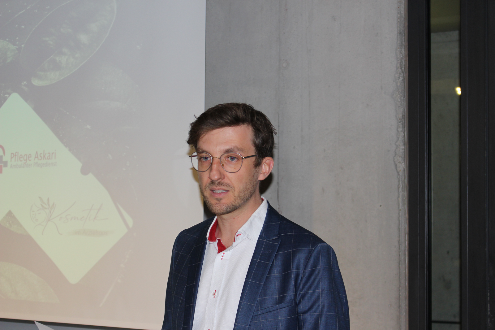 Dr. Maximilian Ohneis jun. erzählte von einer Dame, die er in einem Pflegeheim besuchte und die nicht in die einstige Praxis kommen konnte. Ohneis ist – wie sein Vater früher – auch außer Haus im Einsatz, z.B. in Altenheimen. Der Dame jedenfalls versprach er eine Lösung. „Drei Jahre später hatte ich sie.“ Sein Traum, das große, energetisch grüne Ärztehaus in Gaden, ist selbst für Hochrisikopatienten anfahrbar. „Wo sonst sind vulnerable Patienten besser aufgehoben als in einem Ärztehaus?“ Mit einem Freund sorgte Ohneis im Ärztehaus auch für „weit mehr als nur einen erweiterten Wartebereich“, wie er selbst sagte: Die Kaffeerösterei von Ohneis und Christian Obermeier gab es bereits vor dem Ärztehaus; das Café, das nun im Ärztehaus integriert ist, erfreut sich bester Beliebtheit. Obermeier servierte zur Signetübergabe Kaffeespezialitäten.