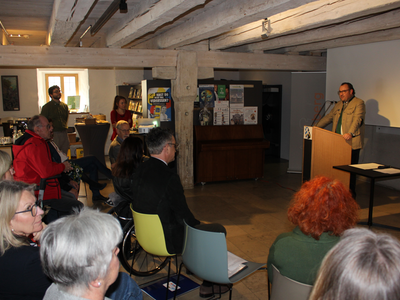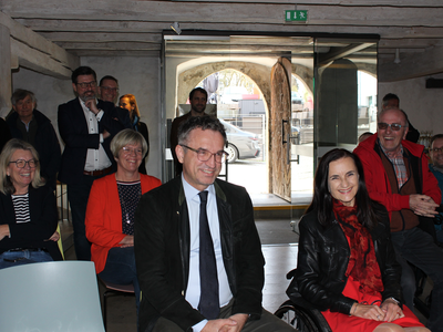 3. Bürgermeisterin Huber-Schallner begrüßte im Herzogskasten die Gäste „an diesem wunderschönen Nachmittag, bei dem wir zum fünften Mal die Signets erhalten.“ Sie ging kurz auf die Entwicklung in Abensberg ein und wie sich die Barrierefreiheit durchgesetzt hat: „Wir sind Rekordhalter in Bayern.“ Die Barrierefreiheit der beiden neu auszuzeichnenden Objekte, die Gemeinschaftspraxis in der Frühlingstraße und das Ärztehaus in Gaden, sei „von zentraler Bedeutung für Menschen mit Einschränkungen, Müttern mit Kinderwagen oder ältere Menschen. Beide Häuser bieten einen entscheidenden Schritt zur Versorgung in Abensberg.“ Sie dankte herzlich allen, die das Thema hochhalten.