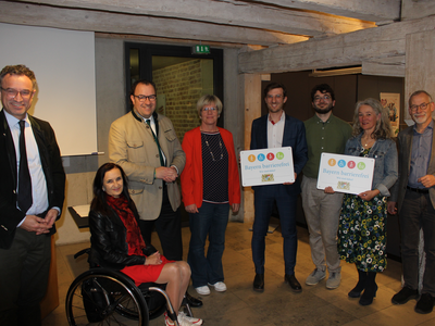 Im Bild oben von links Ministerialdirektor Christian Schoppik, 3. Bürgermeisterin Marion Huber-Schallner 1. Bürgermeister Dr. Bernhard Resch, die Behindertenbeauftragte des Landkreises Heike Huber, Dr. Maximilian Ohneis jun., Dr. Christian Obermeier, Dr. Christine Beis und 2. Bürgermeister Dr. Heinz Kroiss. In der Galerie Schnappschüsse von der Signetübergabe und nochmals das Hauptbild. Fotos: Ingo Knott.
