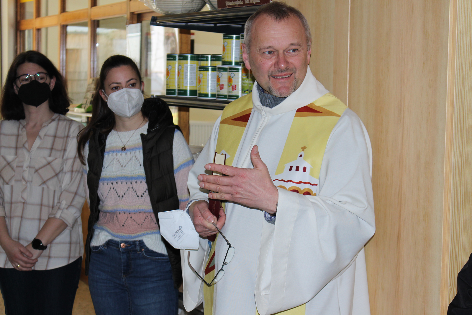 Anwesend waren drei Generationen der Familie Krämer: Firmengründer Georg III., sein Sohn Georg IV., der jetzige Inhaber, mit seiner Ehefrau Irene. Deren gemeinsamer Sohn, Georg V., der das Unternehmen eines Tages übernehmen wird, brachte seine Freundin Steffi mit. Auch Mitarbeiterin Martina Hoffmann kam zur Einweihung. Ebenfalls anwesend waren die Planerin Sonja Schröter, Abensbergs 1. Bürgermeister Dr. Uwe Brandl mit Gattin und Pfarrer Georg Birner mit Kaplan Velangini Reddy Nagireddy. Inhaber Georg Krämer IV. freute sich, dass der Anschluss von Neu- und Bestandsbau perfekt gelungen sei. Er dankte dem Büro Schröter für die gute Arbeit. Frau Schröter betonte, wie schnell hier alles gehen musste. In punkto KfW-Förderung konnten die Fördermittel noch eingeholt werden. Schröter: „Die Bauzeit war sportlich, aber die ortsansässigen Firmen haben auf den Punkt gearbeitet.“