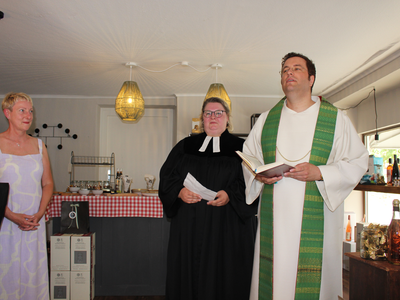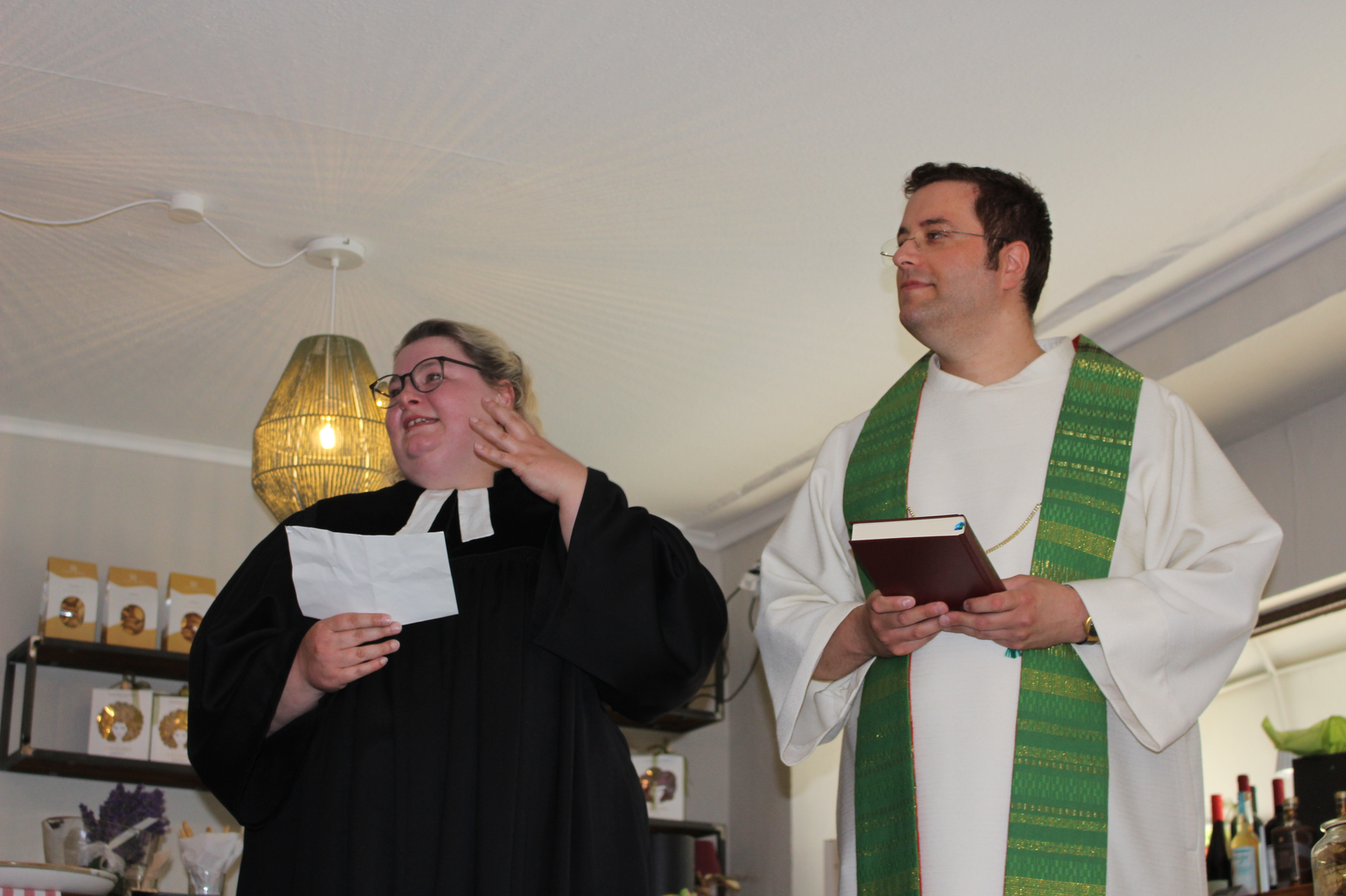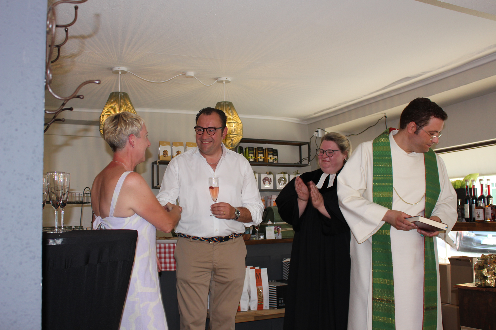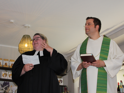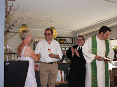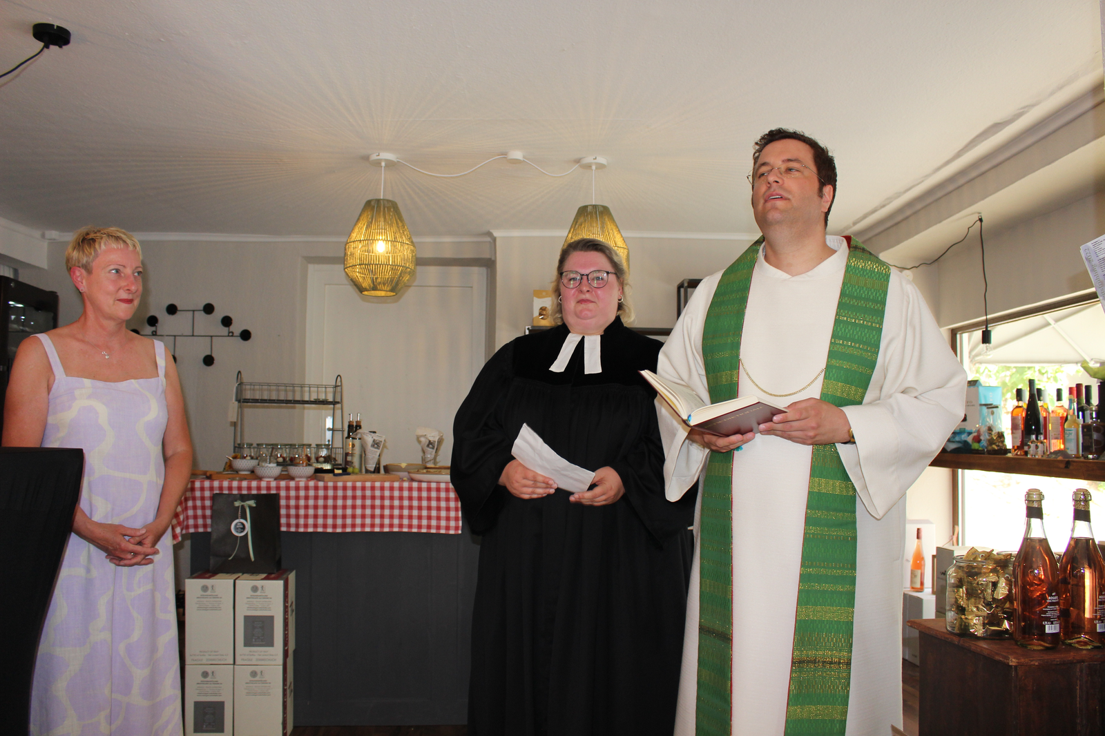 Abensbergs Geistliche freuten sich über die Segnung; im gemeinsamen Gebet und mit der Verteilung des Weihwassers durch Pfarrvikar Heisterkamp wurde diese abgeschlossen. 2. Bürgermeister Dr. Bernhard Resch freute die Anwesenheit der beiden Kirchen, betonte er doch in seinem Grußwort den immensen Wert, den sie als „Kitt“ in der Gesellschaft hätten. Er dankte Inhaberin Küffner für die Innenstadtbelebung und für das rundum köstliche Angebot, das man in ihrem „Ort für Gutes“ vorfinde.