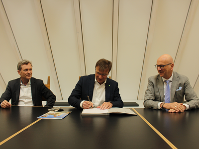 Die Katholische Jugendfürsorge der Diözese Regensburg e.V. und die Stadt Abensberg sorgen gemeinsam für eine weitere Verbesserung der Kinderbetreuung. Auf dem Gelände des Berufsbildungswerks, nordöstlich des Abensberger Stadtgebietes gelegen, wird ein neuer, dreigruppiger, inklusiver Kindergarten entstehen. Bauherr ist die Katholische Jugendfürsorge. Die Stadt Abensberg leistet einen Baukostenzuschuss in Höhe des nicht durch Zuwendungen gedeckten Betrages. Am Mittwoch (6. April 2022) wurden die entsprechenden Verträge im Rathaus der Stadt Abensberg unterzeichnet. 1. Bürgermeister Dr. Uwe Brandl und Stadtkämmerer Andreas Poschenrieder begrüßten dazu den Direktor der Katholischen Jugendfürsorge der Diözese Regensburg e.V. Michael Eibl, sowie den KJF-Abteilungsleiter Wirtschaft/Finanzen, Wolfgang Berg, im Sitzungssaal.