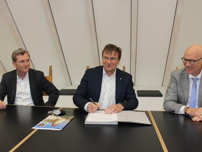 Im Foto oben von links KJF-Abteilungsleiter Wirtschaft/Finanzen, Wolfgang Berg, KJF-Direktor Michael Eibl und 1. Bürgermneister Dr. Uwe Brandl.