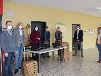 In Abensberg wurden am Mittwoch (17. März 2021) Lehrer-Laptops an die Rektoren der Abensberger Schulen übergeben. Die Finanzmittel dafür stammen aus dem „Sonderbudget Lehrerdienstgeräte“, die Kommunen haben für den Freistaat die Beschaffung organisiert.