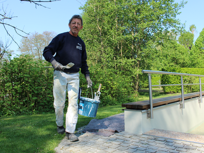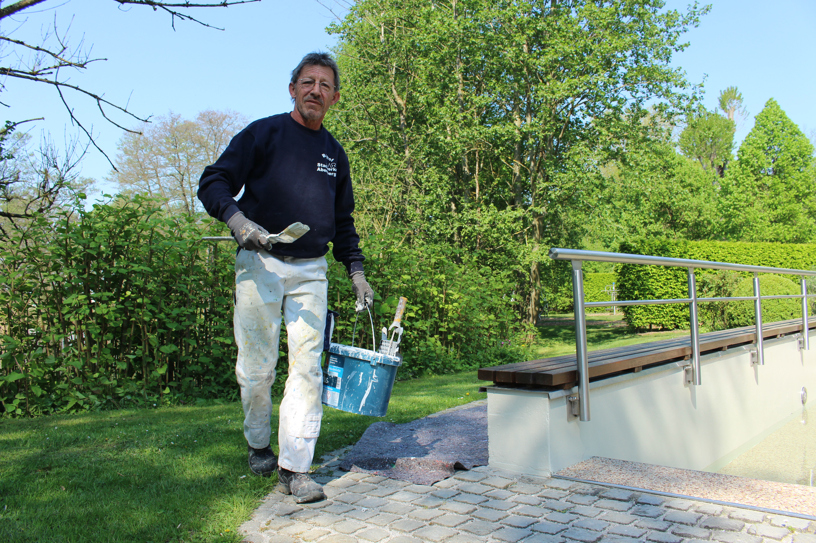 Weiteres Bild: Karl Hannemann von den Stadtwerken Abensberg bei abschließenden Malerarbeiten.