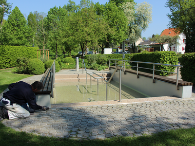 Die Stadtwerke Abensberg haben in den letzten Wochen die Kneipp-Anlage am Schwefelschwammerl hergerichtet. Wichtigste Maßnahme war die Sanierung des Wasserbeckens, das abgedichtet, beschichtet und mit einem Steinteppich belegt wurde. Das Wasserbecken und das Armbad daneben werden aus dem Brunnen mit schwefelhaltigem Wasser gespeist – Schwefel hat positive Effekte auf die Gelenke, weiß Gerda Pfaffeneder, die Vorsitzende des Abensberger Kneipp-Vereins. Sie trifft sich zum Abschluss der Sanierungsarbeiten der Stadtwerke mit Leiter Dr. Rainer Reschmeier. Und ist sehr überzeugt vom Ergebnis: „Wir haben eine besonders schöne Anlage, die überall Anerkennung findet. Ich wünsche mir sehr, dass das auch respektiert und wertgeschätzt wird.“
