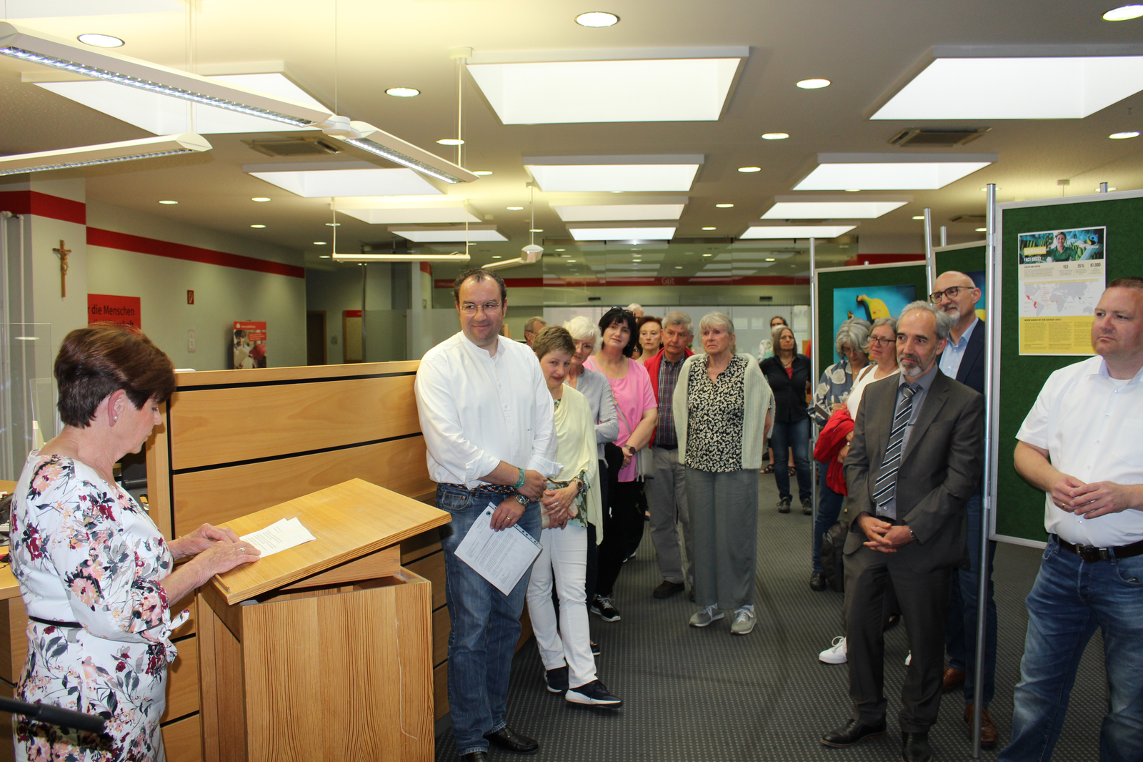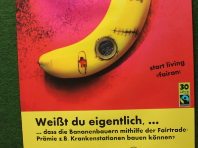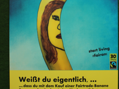 Die Stadt Abensberg war 2010 die erste Stadt in Niederbayern, die den Titel „Fairtrade-Stadt“ erhalten hat. Der muss alle zwei Jahre erneuert werden. Eine Lenkungsgruppe vom „Eine Welt"-Forum der katholischen und evangelischen Pfarrei ist dafür verantwortlich. Sprecherin Klara Wirthensohn hat bei der Eröffnung der Ausstellung „Weißt Du eigentlich..“ in den Räumen der Sparkasse Abensberg am Donnerstagabend (2. Juni) die gute Nachricht dabei gehabt: „Abensberg bleibt für weitere zwei Jahre Fairtrade-Stadt.“ Abensbergs 2. Bürgermeister Dr. Bernhard Resch freute dies ganz besonders: „Darauf sind wir sehr stolz!“ Er dankte den Fairtrade-Aktiven in Abensberg und wandte sich auch an die Schülerinnen und Schüler der Klasse 6a der Johann-Turmair-Realschule: „Wisst ihr eigentlich, was ihr für eine wichtige Arbeit geleistet habt?“ Denn unter dem Motto „Weißt Du eigentlich …“ haben sich die Schülerinnen und Schüler in den letzten Wochen mit dem Thema Fairtrade beschäftigt. Eine künstlerisch ansprechende und sehr informative Ausstellung ist daraus entstanden – sie bildete den Rahmen für den Abend.