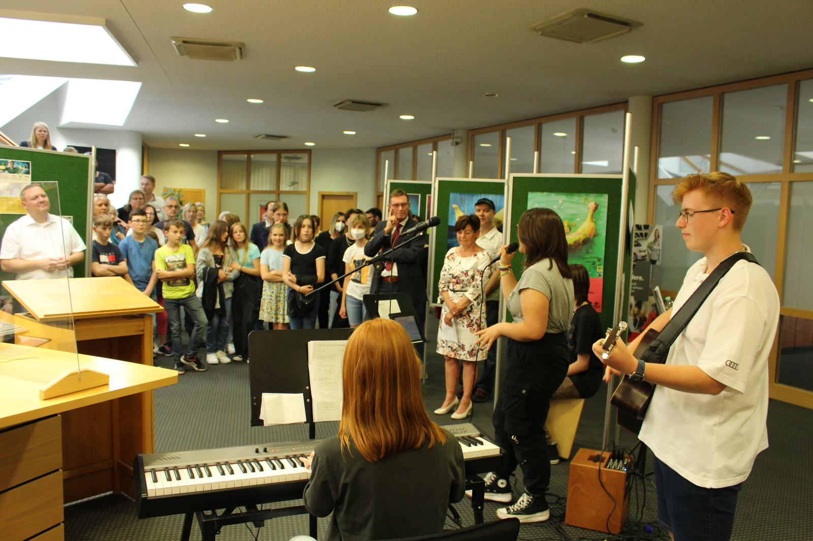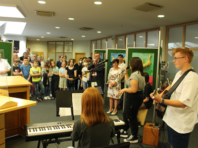 Sie dankte allen Anwesenden für ihre Teilhabe und ihre Bereitschaft, die Welt etwas fairer zu gestalten. Das Engagement der Klasse 6a sei bemerkenswert. Das bestätigte Klassenlehrerin Nadja Hanft: „Unfassbar motiviert“ seien die Schülerinnen und Schüler gewesen. Die grinsten über beide Ohren und auch die Schulleitung, Rektor Dr. Peter Spateneder und Zweiter Konrektor Thomas Daffner, hörte erfreut zu. Zwischen den Reden glänzte die Schulband mit schönen Interpretationen aktueller Pop- und Rocksongs.