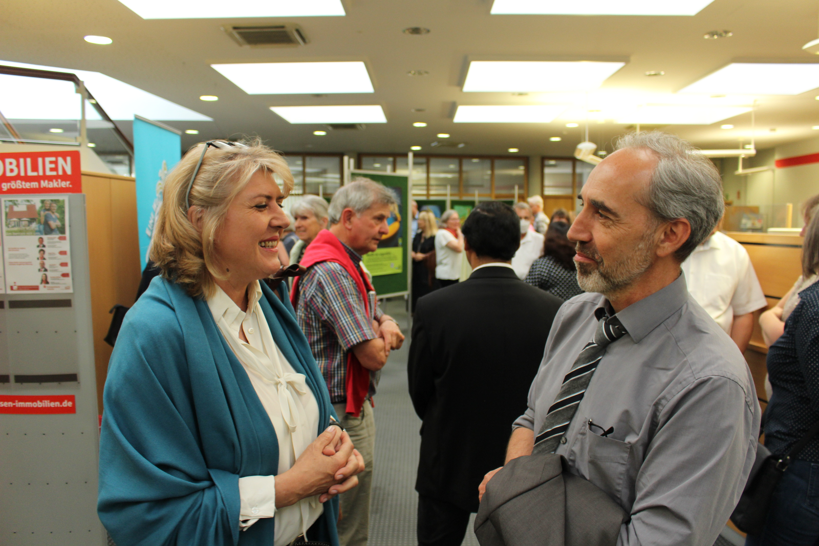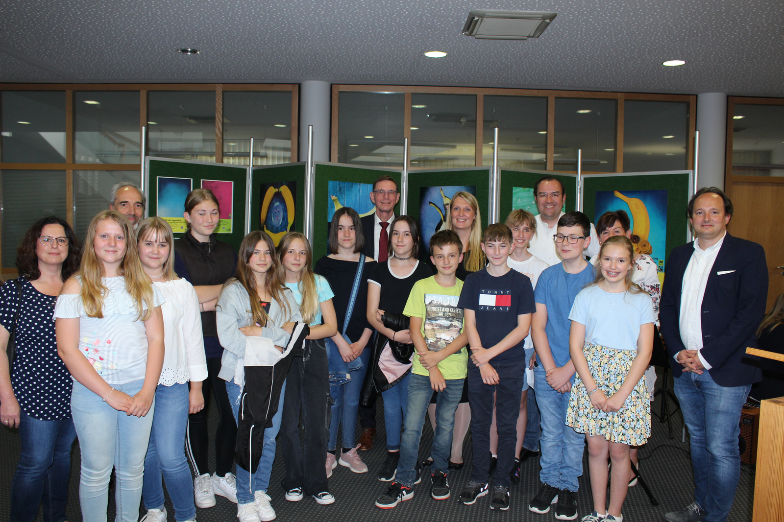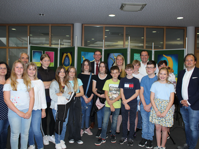 „So einen Deutsch-Unterricht hätte ich mir gewünscht“, so Dr. Resch. Klassenlehrerin Nadja Hanft und ihre Schützlinge hörten an diesem Abend sehr viel Lob: Sparkassen-Gebietsdirektor Reinhard Handschuh gratulierte gleich zu Beginn des Abends zu „dieser sehr gelungenen Ausstellung“. Und dass auch die Johann Turmair-Realschule als Fair Trade-Schule ausgezeichnet ist – seit 2016: „Fair Trade ist ein Bildungsauftrag“, so der Hausherr. „Es werden Werte fürs Leben vermittelt“, und das machten die Kunstwerke der 6a deutlich. Er sei immer gerne bereit, dafür buchstäblich Platz zu machen. Frau Wirthensohn strahlte: „Es ist schön, dass wir wieder öffentliche Aktionen machen können.“