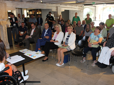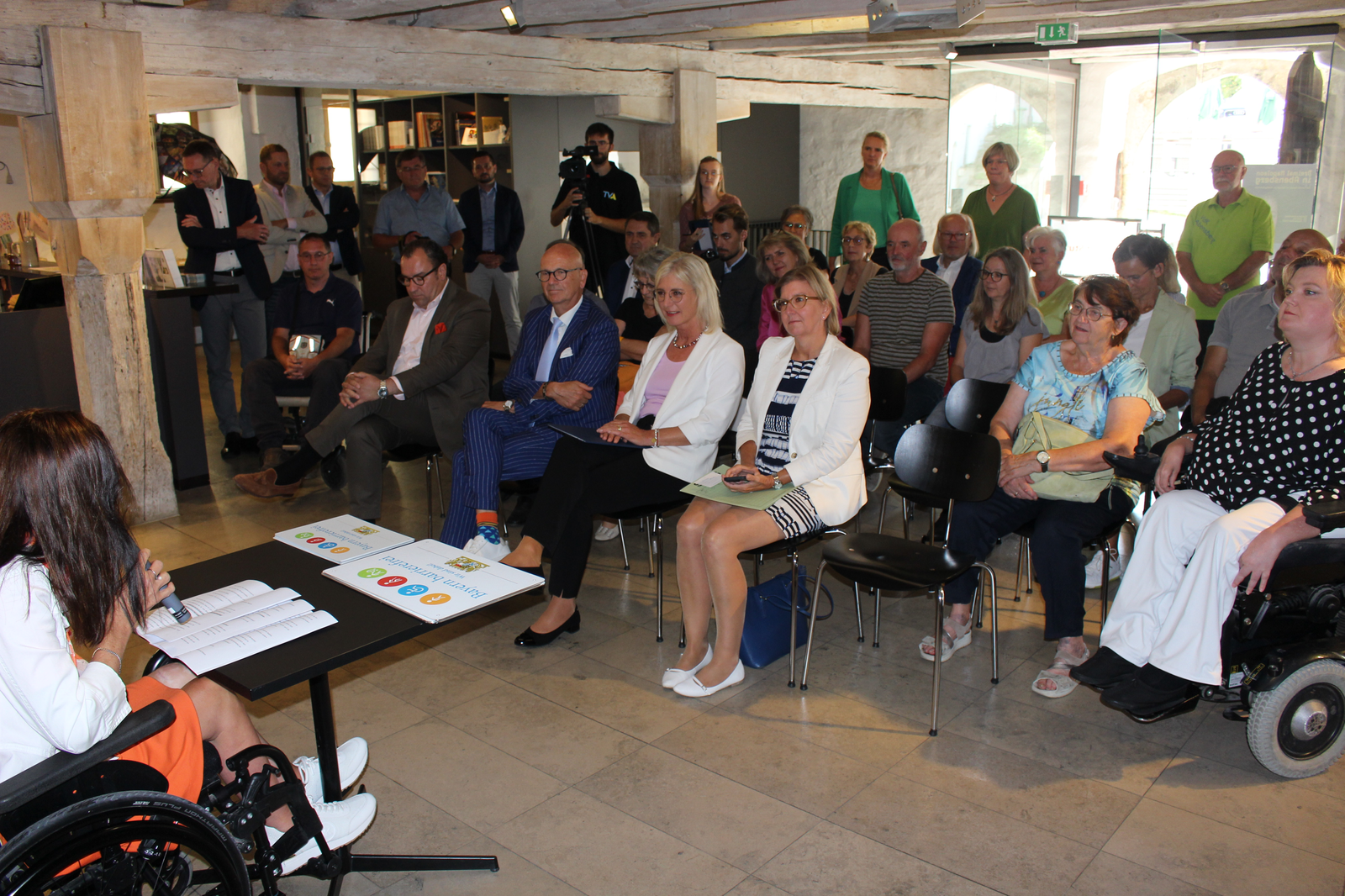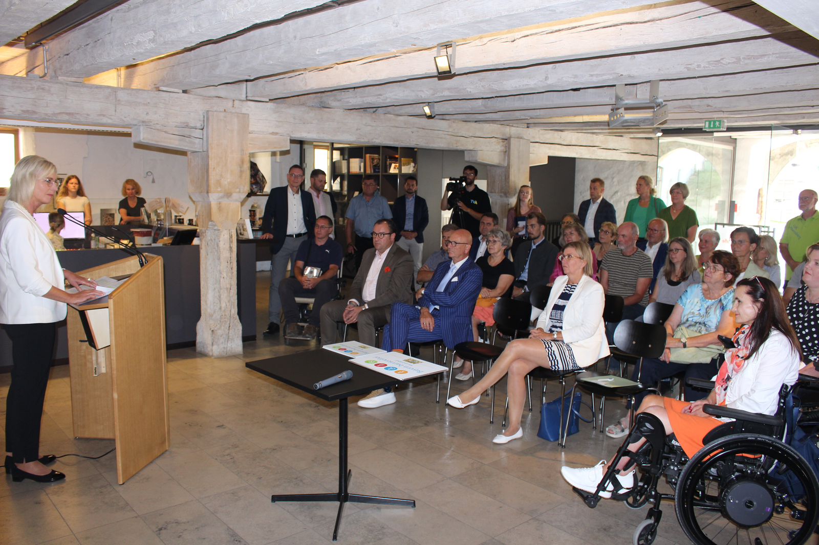Mit den nun insgesamt 27 Barrierefrei-Signets ist Abensberg in Bayern, so Ministerin Scharf, nicht nur eine Spargelspitze voraus, sondern eine ganze Stange. „Inklusion hat in Abensberg tiefe Wurzeln. Es gibt keine Stadt, die das vorweisen kann.“ An die 3. Bürgermeisterin: „Vorangetrieben durch Frau Huber-Schallner.“ Sie habe „gemeinsam mit dem Bürgermeister Menschen angesteckt, ein Problembewusstsein geschaffen.“ Mittlerweile kommen Abordnungen anderer Städte nach Abensberg, um sich in Sachen Barrierefreiheit zu informieren. Abensbergs 3. Bürgermeisterin ist seit einem Unfall vor 27 Jahren auf den Rollstuhl angewiesen. Barrierefreiheit ist für sie ein alltägliches Thema, Inklusion eine Herzensangelegenheit: „Menschen mit Behinderung wollen nicht bevormundet oder bemitleidet werden, sie wollen akzeptiert, respektiert werden und selbständig ihr Leben gestalten können.“ In ihrer Heimatstadt lädt sie auch deshalb seit vielen Jahren zum „Perspektivwechsel“ ein und stellt dabei Interessenten Rollstühle zur Verfügung. „Vielen wird erst durch so eine Erfahrung bewusst, wie vielfältig die Hindernisse sind.“