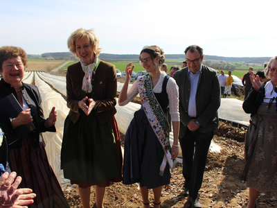 Auch Petra Högl, Vorsitzende der Erzeugergemeinschaft und Kelheims Landtagsabgeordnete, drückte ihre Freude über den Saisonstart aus: „Das Warten hat ein Ende - jetzt ist es wieder so weit: die Spargelsaison in Abensberg beginnt! Dies freut mich als Liebhaberin des edlen Gemüses und auch als Vorsitzende der Erzeugergemeinschaft sehr.“ Sie dankte der Spargelkönigin Nora Aunkofer sowie den engagierten 14 aktiven Spargelbauern der Erzeugergemeinschaft, die in der Region auf rund 300 Hektar mit viel Sorgfalt den Qualitätsspargel anbauen.