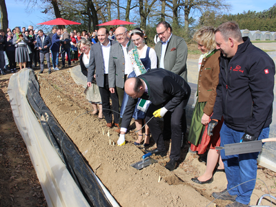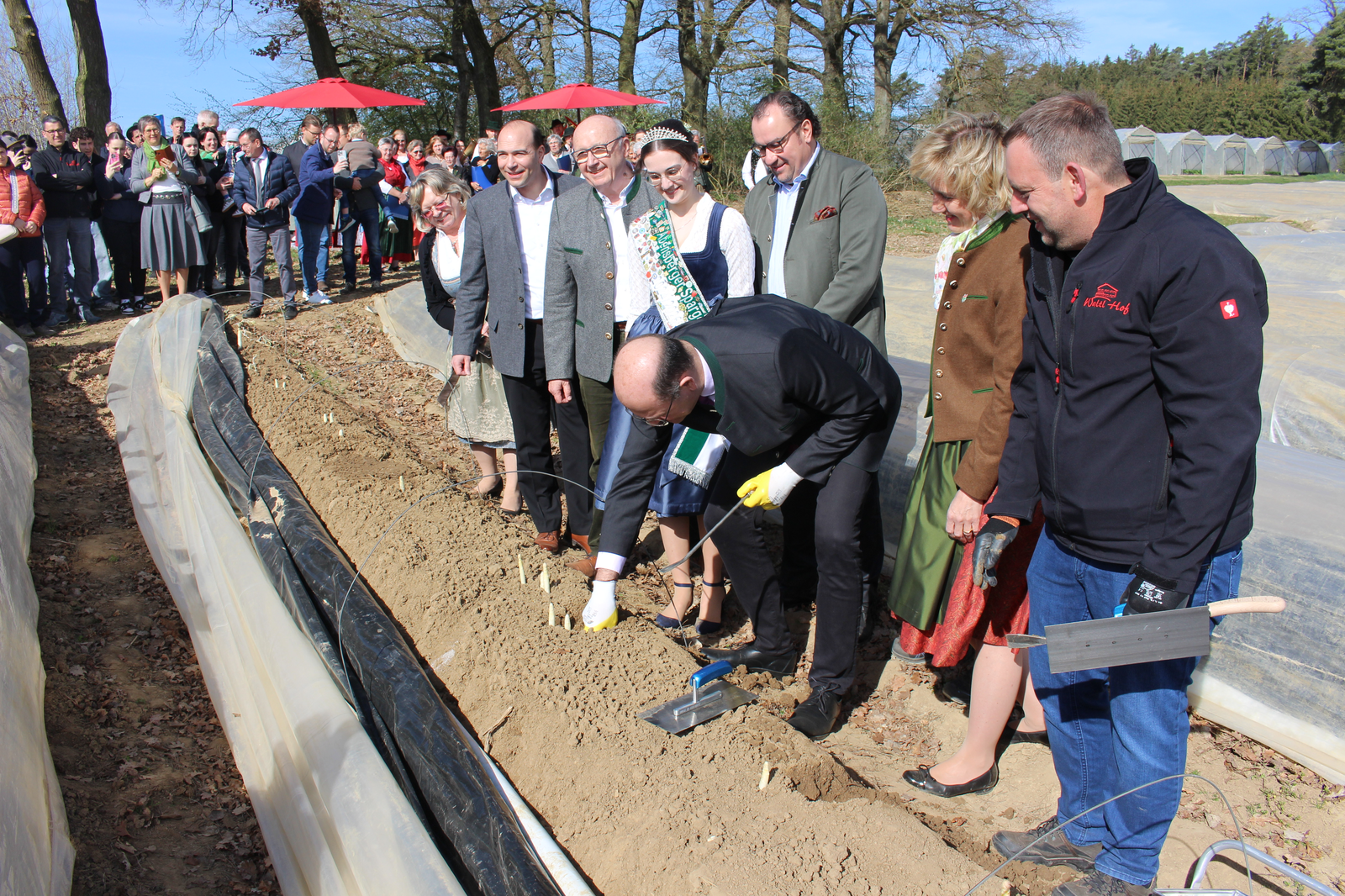 Zahlreiche Gäste aus der Landwirtschaft, Gesellschaft und der Politik, darunter Abensbergs 1. Bürgermeister Dr. Bernhard Resch, Kelheims Landrat Martin Neumeyer und Bundestagsabgeordneter Florian Oßner waren der Einladung gefolgt, um diesen besonderen Moment mitzuerleben. Die MAI-Muse sowie der Landfrauenchor, die das Spargellied anstimmten, sorgten für stimmungsvolle Unterhaltung.
