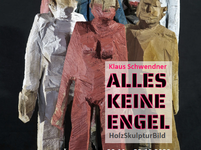 Die Skulpturen werden ergänzt durch grob mit der Motorsäge geschnittene und farbig gefasste Holzreliefs. Auch sie handeln abseits jeder himmlischen Perfektion von alltäglichen Geschichten des Menschseins. Bild und Titel laden ein zum Spiel zwischen Gesehenem, Bekanntem und irritierend Ungewohntem. "Alles keine Engel" ist keine Kritik an der Kirche, den Menschen oder der Tradition, sondern eine Einladung, Engel und Weihnachten aus einer neuen Perspektive zu betrachten und die wahre Schönheit im Unvollkommenen zu entdecken.