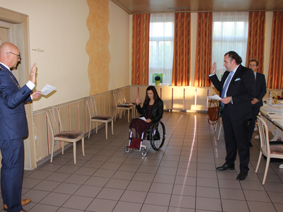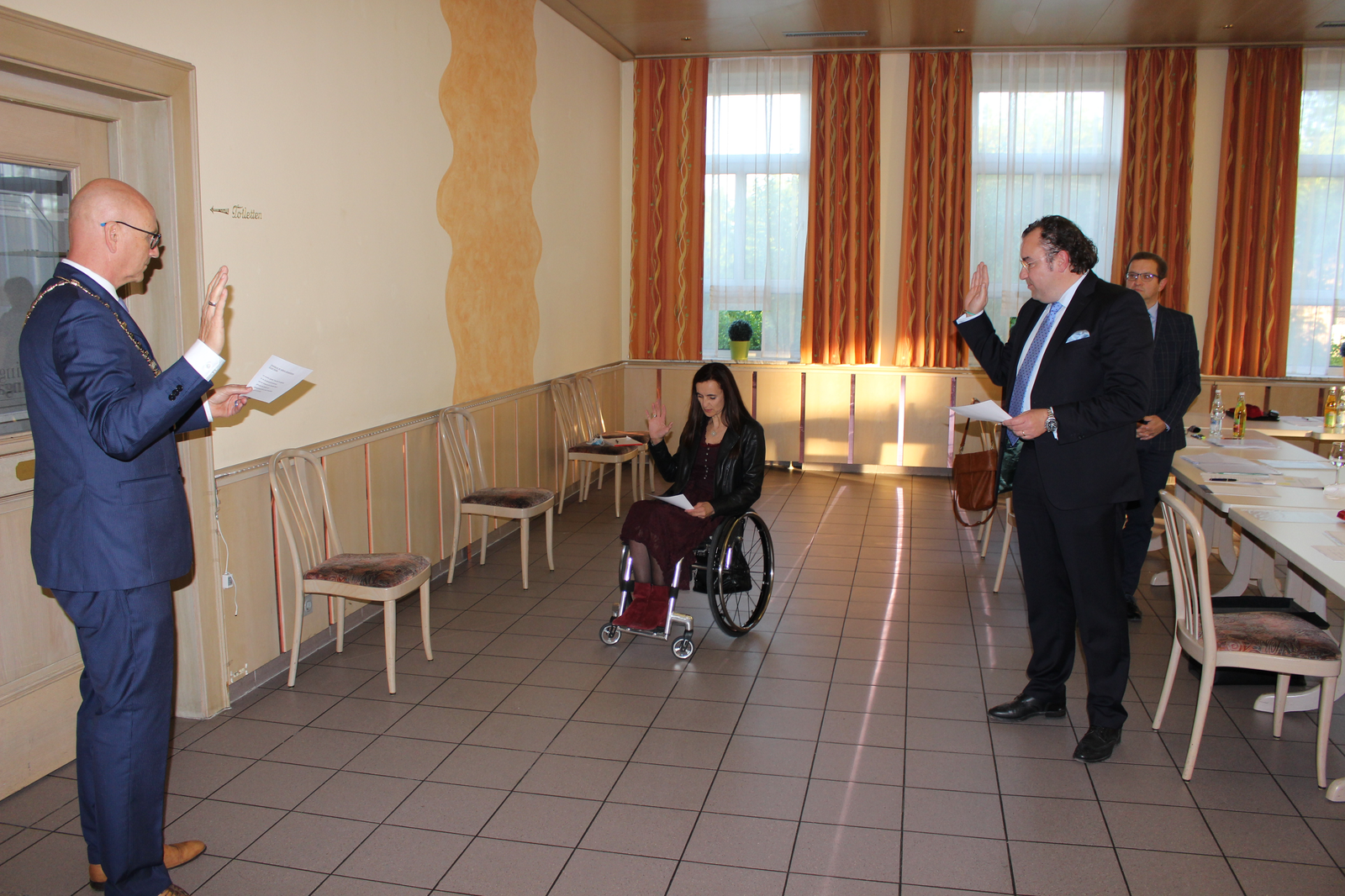 Im Hauptfoto oben links vereidigt Abensbergs 1. Bürgermeister Dr. Uwe Brandl die 2. und 3. Bürgermeister. In der Galerie ein Schnappschuss von der Auszählung eines Wahlvorgangs. Nochmals das Hauptfoto. Die neue 3. Bürgermeisterin der Stadt Abensberg.