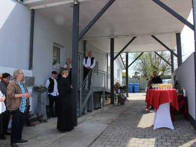 Martin Greindl dankte allen, die gekommen waren und sagte, dass die Familie Hutterer super mitgeholfen habe bei der Realisierung. Dass Jürgen Fischer vom Autohaus Fischer „in kurzer Zeit alle benötigten Fahrzeuge“ besorgen konnte, war für ihn ebenfalls nicht selbstverständlich. Ebenfalls dankte er Werbetechnik-Bri von Werner Besl, wo die Logos, Beschriftungen und Beklebungen wunschgemäß und passgenau entworfen und realisiert worden sind. „Allen Firmen, die uns tatkräftig unterstützt haben, gebührt mein Dank.“ Und es sei, so der Firmeninhaber, auch nicht selbstverständlich, dass Pfarrer Schillinger die Zeit gefunden habe: „Unsere Geistlichen haben viele Verpflichtungen, im Grunde sind sie vom Beginn eines Lebens bis zum Ende gefordert.“ Er dankte dem Pfarrer herzlichst. Und schloss mit dem Satz: „Ich wünsche euch allen ein langes Leben!“