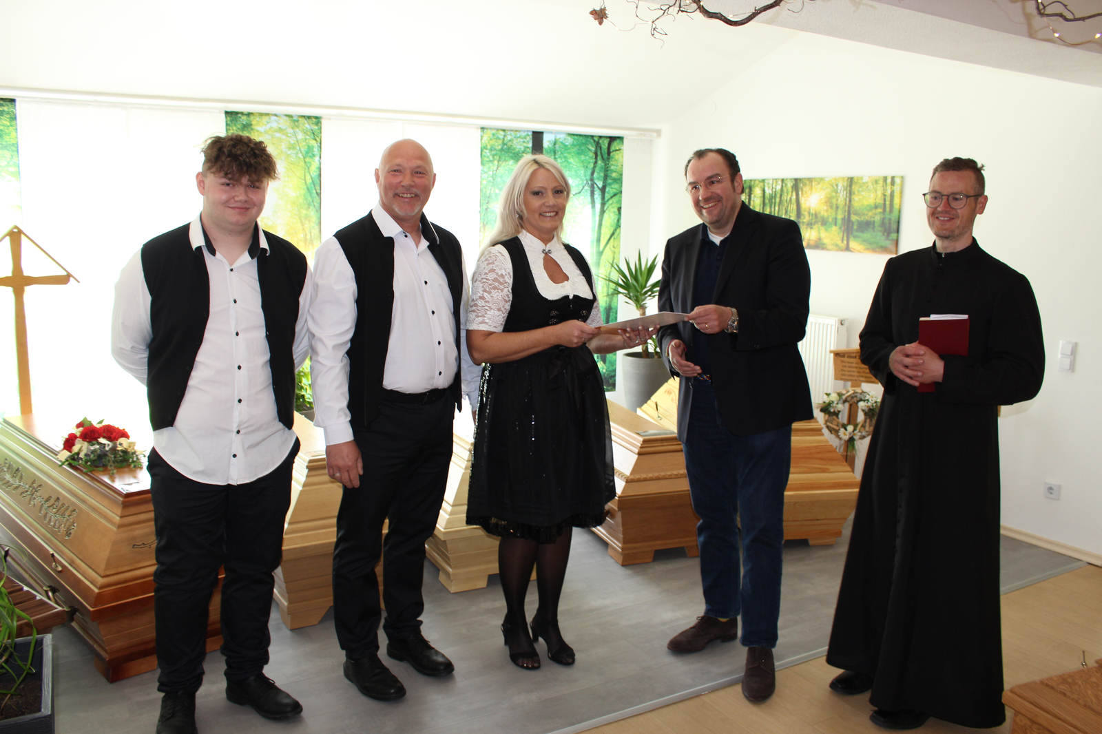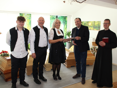 Im Bild oben von links Michael, Martin und Anja Greindl mit 2. Bürgermeister Dr. Bernhard Resch und Pfarrer Wolfgang Schillinger.