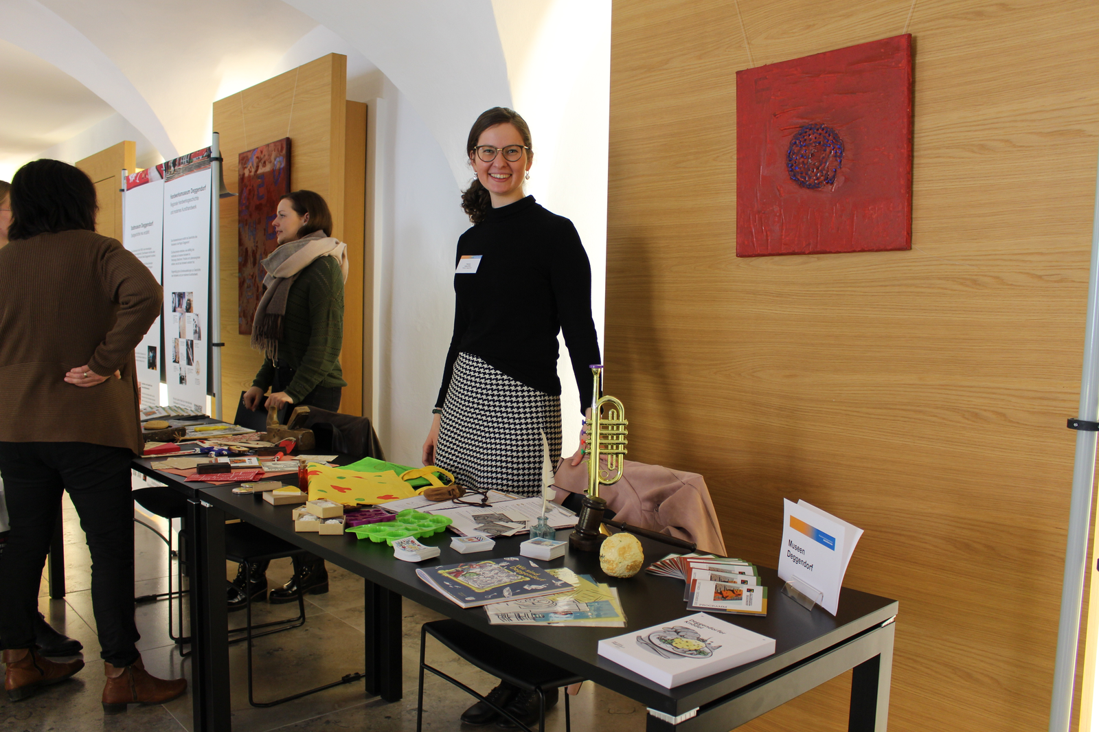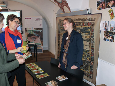 Museen seien mehr als ein außerschulischer Lernort, betonte auch Dr. Elke Kollar, Direktorin des Museumspädagogischen Zentrums München, bei ihrem Impulsvortrag. So würden museumspädagogische Programme dem Unterricht Erlebnischarakter verleihen, mit dem Effekt, dass die Inhalte sehr viel besser im Gedächtnis haften bleiben. Bei der anschließenden Podiumsdiskussion sprachen Dr. Elke Kollar, Stefanie Macharowsky vom Benedikt-Stattler-Gymnasium Bad Kötzting, Anja Klein, Comenius Gymnasium Deggendorf und MUSbi-Team Niederbayern, und Anja Hobmaier vom Kastenhof Landau über die zentrale Frage der Veranstaltung: Wie lässt sich eine gute Kooperation zwischen Schule und Museum erleichtern und verstetigen? Moderiert wurde die Podiumsdiskussion von den Organisatorinnen Dr. des. Beatrice Wichmann und Dr. Cindy Drexl.