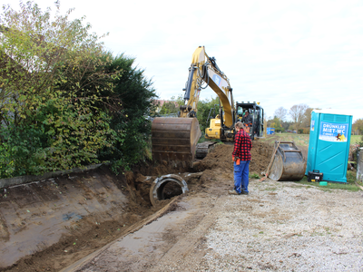 Stadtrat Reinhard Handschuh erinnerte bei dem Termin daran, dass es an dieser Stelle bereits einen Wassergraben gegeben hat. Dr. Reschmeier und Konrad Ettengruber, Leiter des Abensberger Klärwerks, betonten, dass der Graben die dreifache Menge an Wasser fassen könnte, als es das bisherige Kanalsystem konnte.