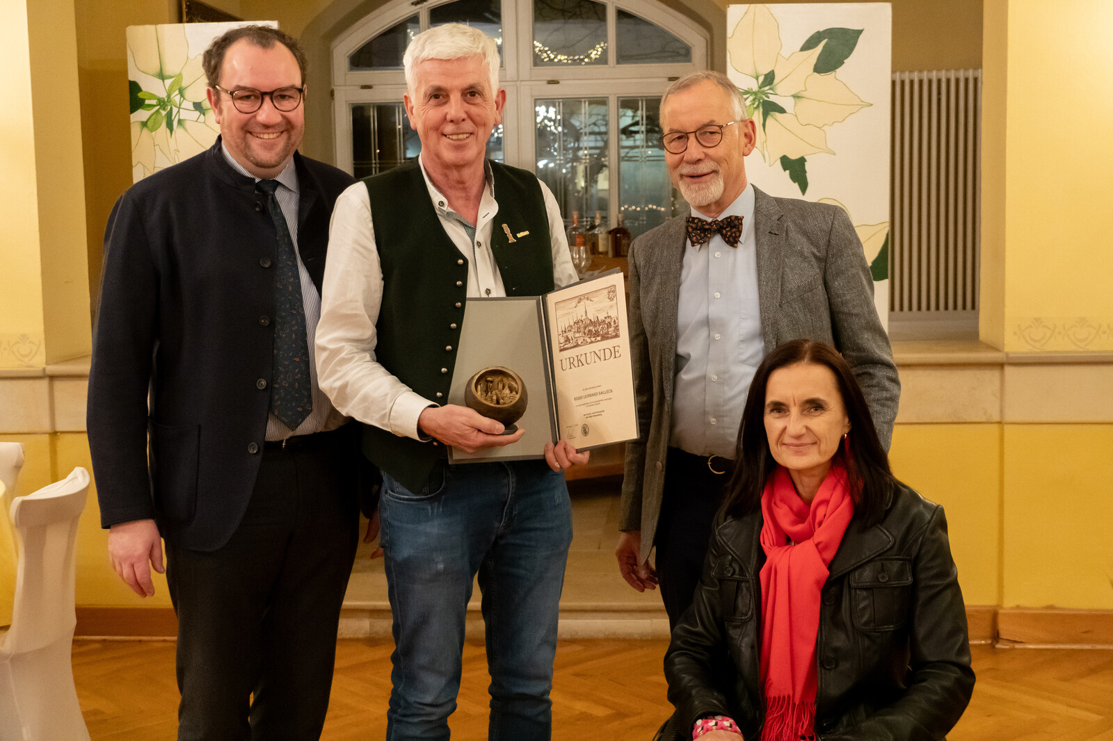 Herr Leonhard Salleck hat seit Übernahme der Geschäftsführung der Brauerei zum Kuchlbauer im Jahre 1969 als Philosoph sowie Entwickler und Gönner zahlreiche kulturelle Leistungen erbracht und Impulse für die Stadt Abensberg gesetzt: Er prägte den Gillamoos in seiner heutigen Form, u.a. mit dem Festgottesdienst - also der Anknüpfung an den ursprünglichen traditionellen Wallfahrtscharakter. Er stiftete auch den Bildstock als Reminiszenz an den Ursprung. Herr Salleck beschäftigte sich intensiv mit dem Werk von Friedensreich Hundertwasser. Er ließ den "Hundertwasserturm" und das Kunsthaus bauen. Mit seinen Projekten und der Gestaltung der Brauerei setzte er architektonische Akzente. Als begehbares Kunstwerk hat er das Kunsthaus mit den nahezu vollständigen graphischen Werken von Friedensreich Hundertwasser geschaffen. Leonhard Salleck erarbeitete mit seinem Buch „der Schlüssel von Leonardo da Vincis Abendmahl“ eine wichtige Interpretation der versteckten Botschaften des Kunstwerkes. Weiter betrieb Herr Salleck jahrzehntelanges Kultursponsoring in Abensberg.