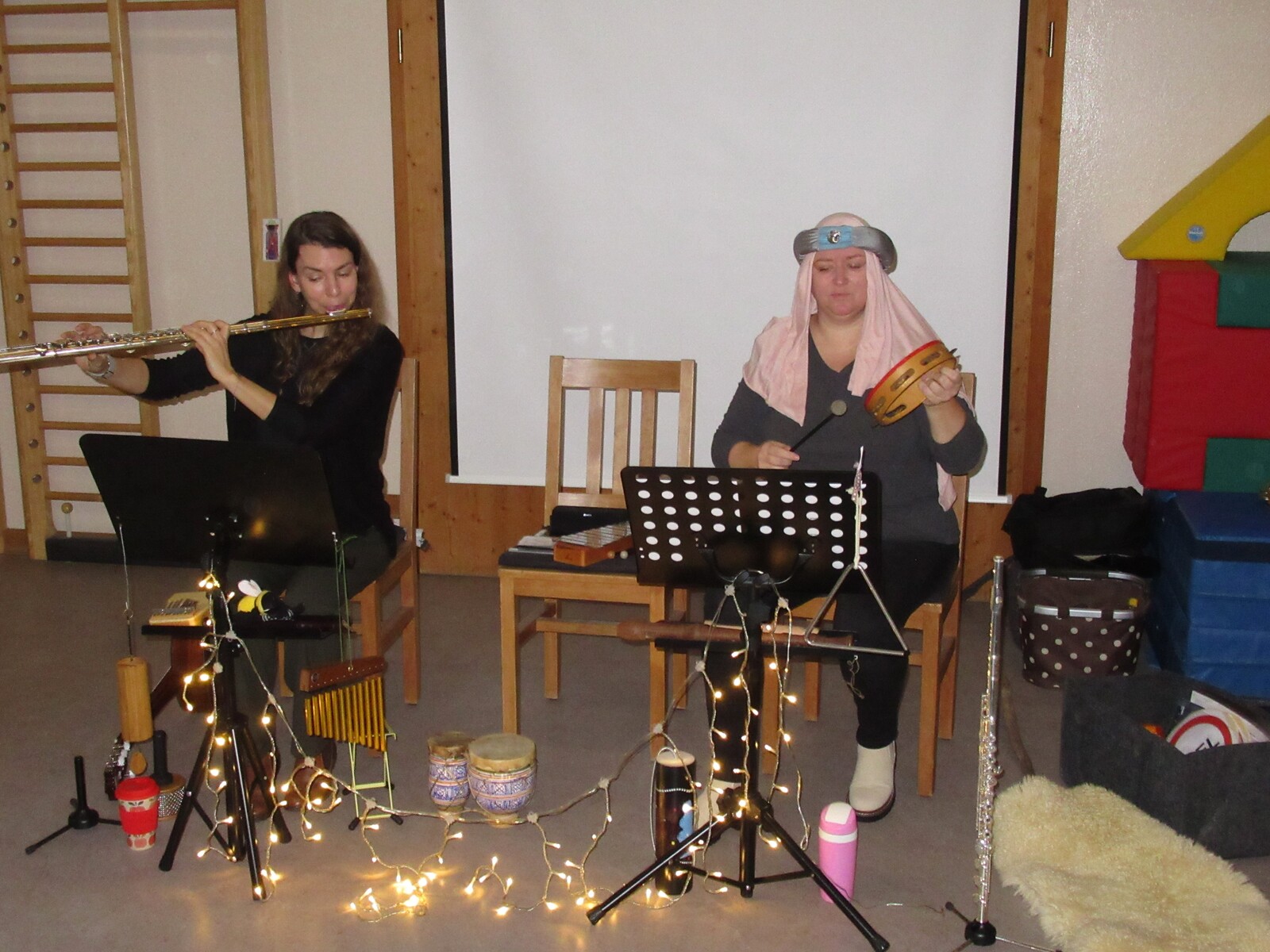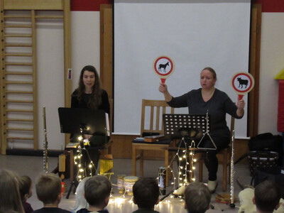 Frau Teubl hat ihr Diplom im Hauptfach Operngesang und Frau Weigert ist ausgebildete Instrumentalpädagogin im Hauptfach Querflöte. Mit Ihren klingenden Kinderbüchern sind die beiden seit 2017 in Kindergärten, Grundschulen, Büchereien und Buchläden mit verschiedenen Geschichten unterwegs. Die musikalischen Lesungen sollen die Freude am geschriebenen Wort und die Lust an der Musik wecken. Gefühle und Emotionen werden durch die Musik verstärkt und unterstrichen, und die Fantasie der Kinder angeregt. Gesponsert wurde die Aufführung vom Förderverein der Musikschulen.