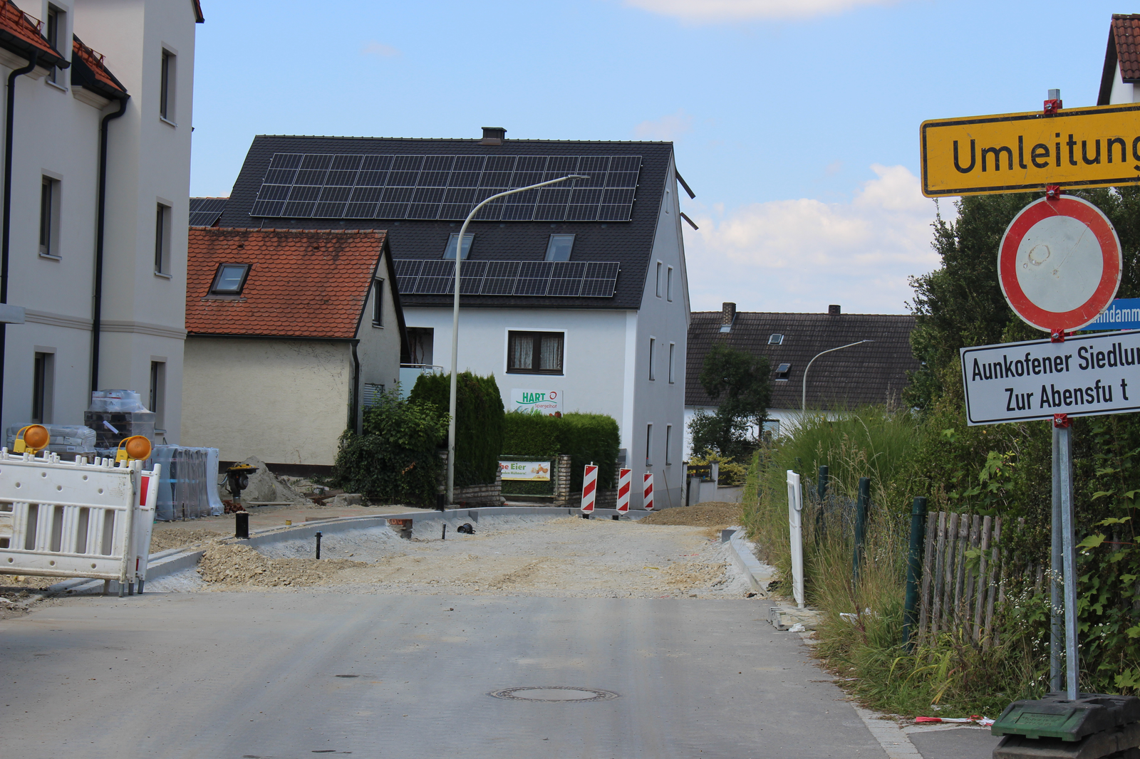 Ab Dienstag, 30. Juli, werden die Asphaltierungsarbeiten in der „Aunkofener Straße“ (Bauabschnitt III) fertiggestellt. Dieser Bauabschnitt beginnt hinter der Kreuzung „Am Bahndamm“ (Höhe Hausnummer 29) und endet unten an der Kreuzung „Aunkofener Siedlung“. Ein Teil der „Aunkofener Siedlung“ wird ebenfalls erneuert.
