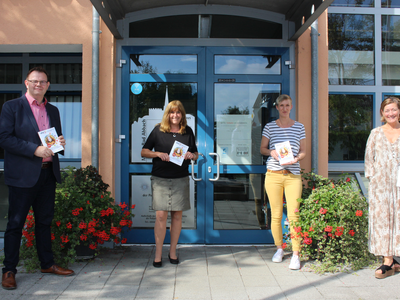 Im Bild von links Bürgermeister Benedikt Grünewald, vhs-Mitarbeiterin Anke Daffner, vhs-Leiterin Katrin Koller-Ferch und Gemeindereferentin Tina Grünewald mit dem neuen Kursbuch.