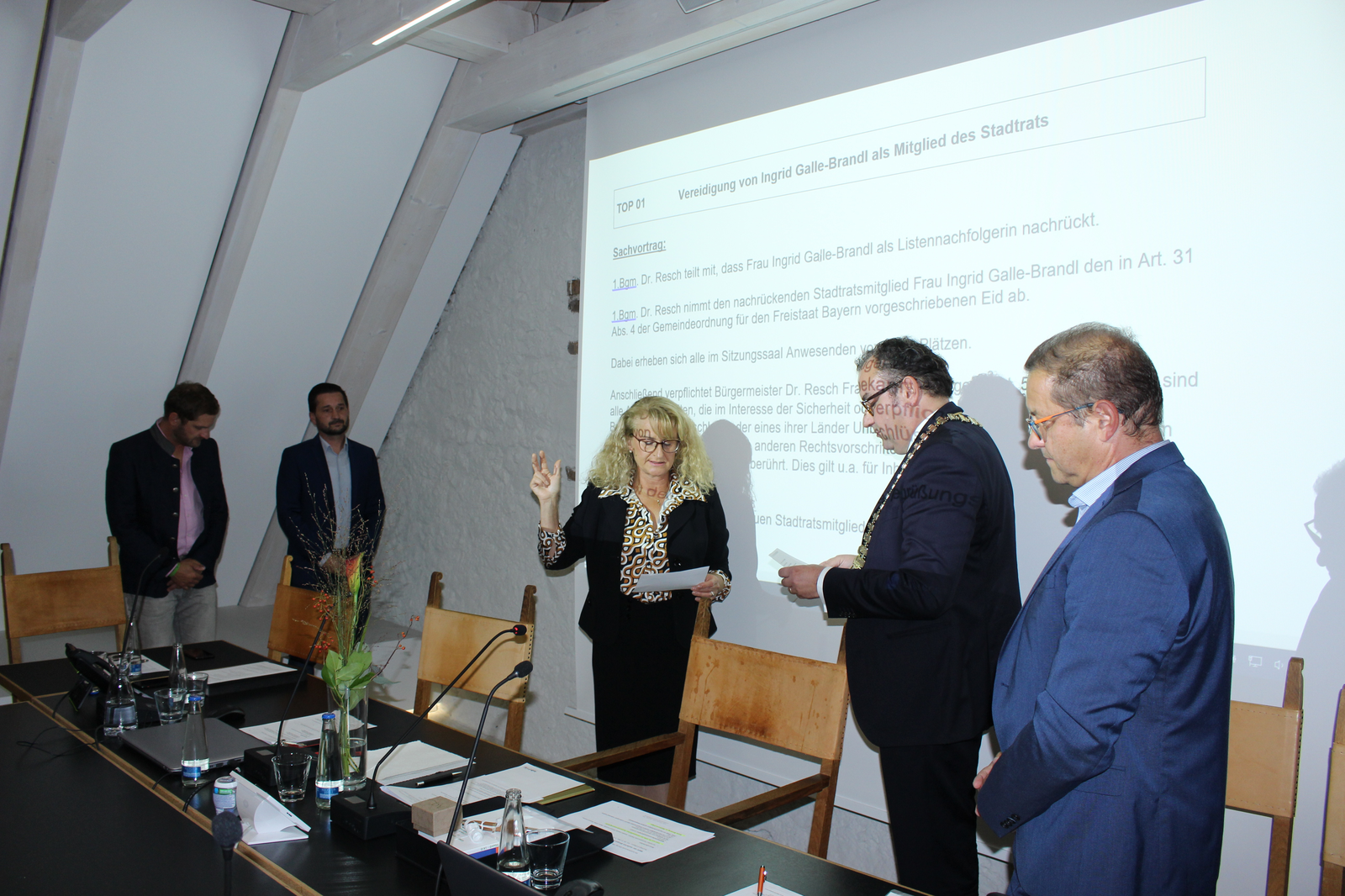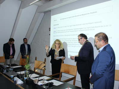 Ingrid Galle-Brandl von der Landwähler-Vereinigung Offenstetten wurde als Nachrückerin im Abensberger Stadtrat in der konstituierenden Sitzung am Dienstagabend von Dr. Bernhard Resch, 1. Bürgermeister, vereidigt. (Zweites Bild in der Galerie.)