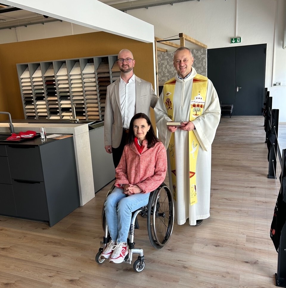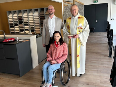Im Foto oben Inhaber Dominik Schober mit Abensbergs 3. Bürgermeisterin Marion Huber-Schallner und Pfarrer Georg Birner. In der Galerie Schnappschüsse im "Küchentraum Abensberg". (Fotos: Hauptmotiv von Dominik Schober, weitere Aufnahmen von Ingo Knott.)