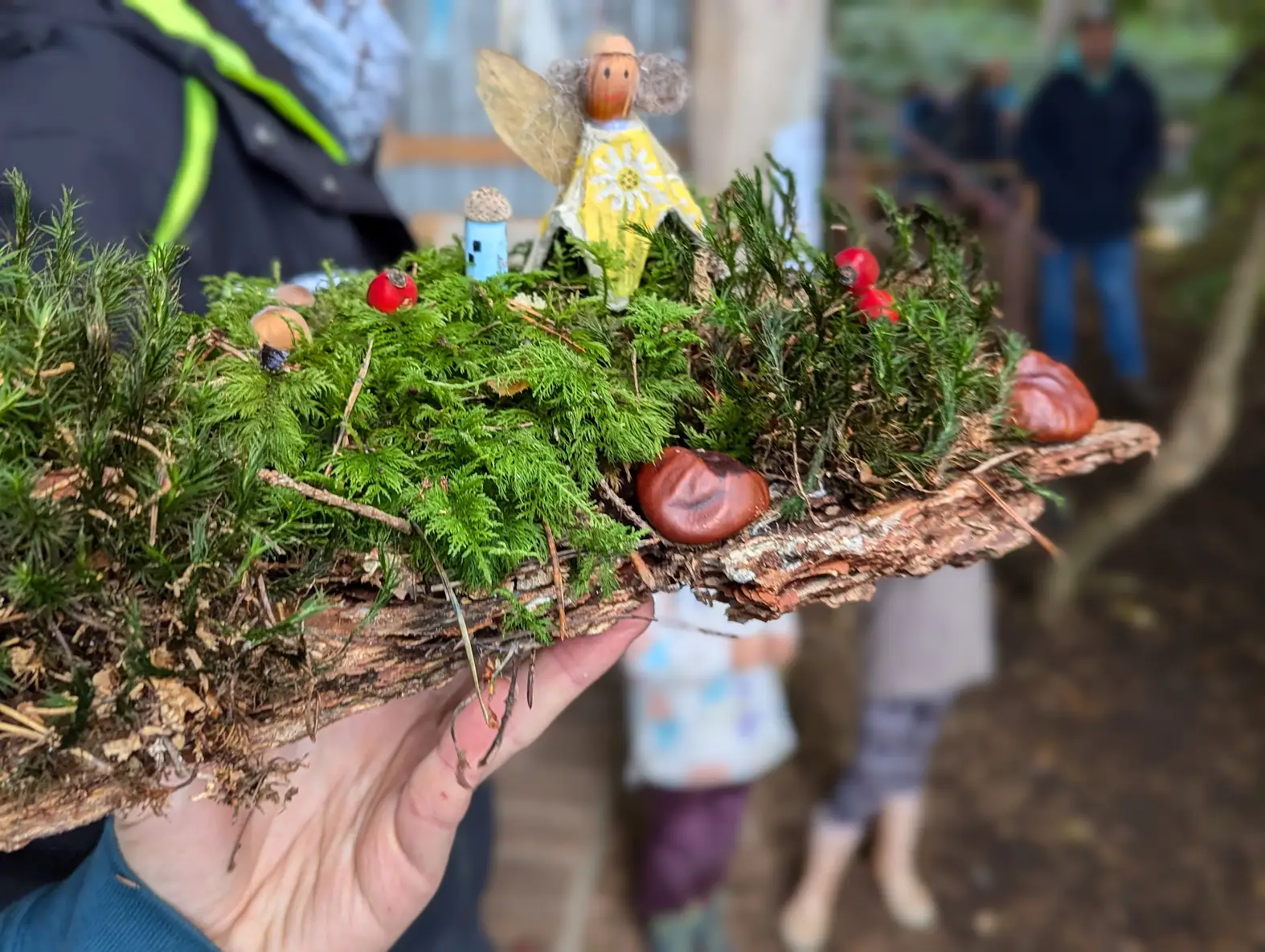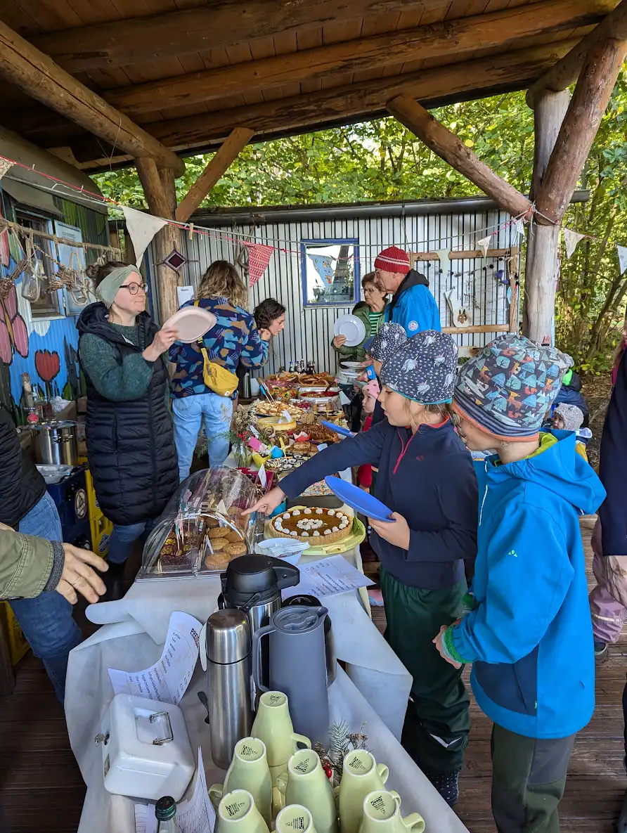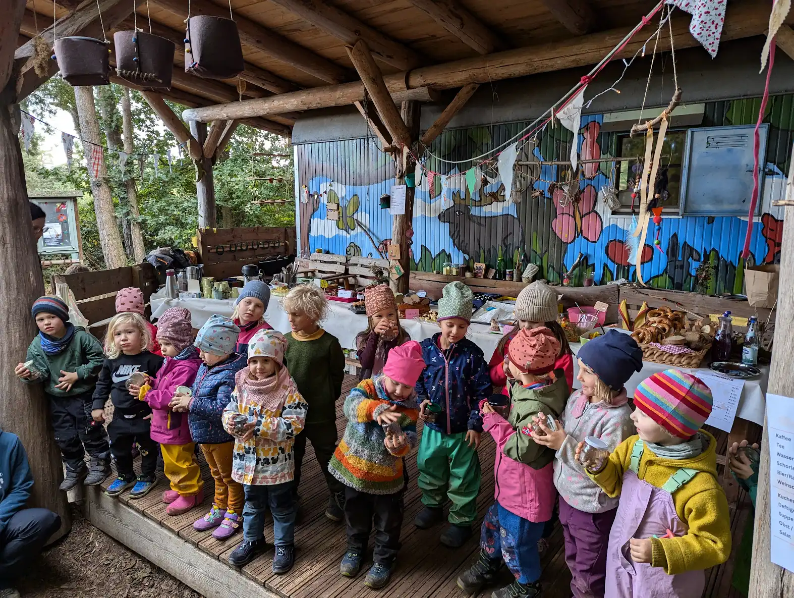Die Eltern hatten ein köstliches Buffet vorbereitet, das die Gäste mit herbstlichen Leckereien verwöhnte. Frisch gebackene Kuchen, selbstgemachte Igel-Muffins und warme Kartoffelsuppe direkt vom Feuer sorgten für zufriedene Gesichter und glückliche Bäuche. Die Kinder traten mit Begeisterung auf und führten das Lied “Wer hat die Haselnuss geklaut” vor. Begleitet von selbstgebastelten Rasseln sangen sie fröhlich und voller Inbrunst. Besonders hervorzuheben ist der Besuch des Bürgermeisters, Dr. Bernhard Resch. Er würdigte die wertvolle Arbeit des Vereins und insbesondere des Vereinsvorstands und betonte die Bedeutung des Waldkindergartens für die Gemeinde Abensberg.
