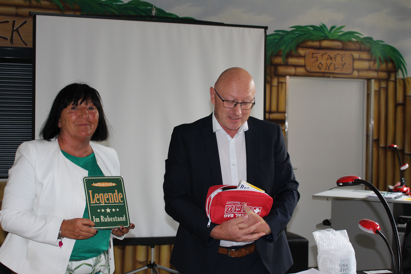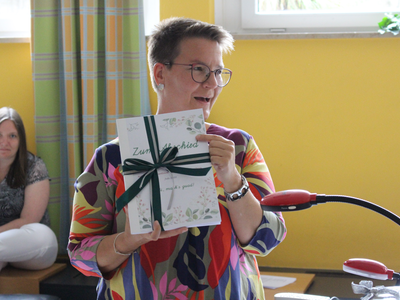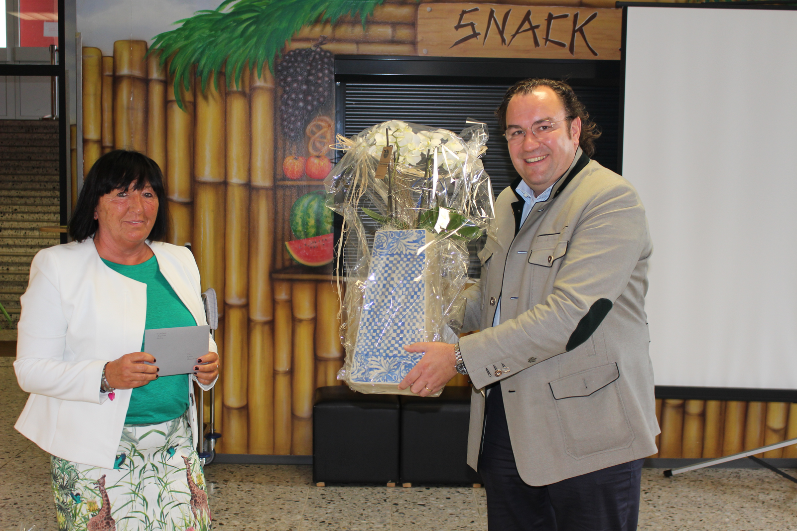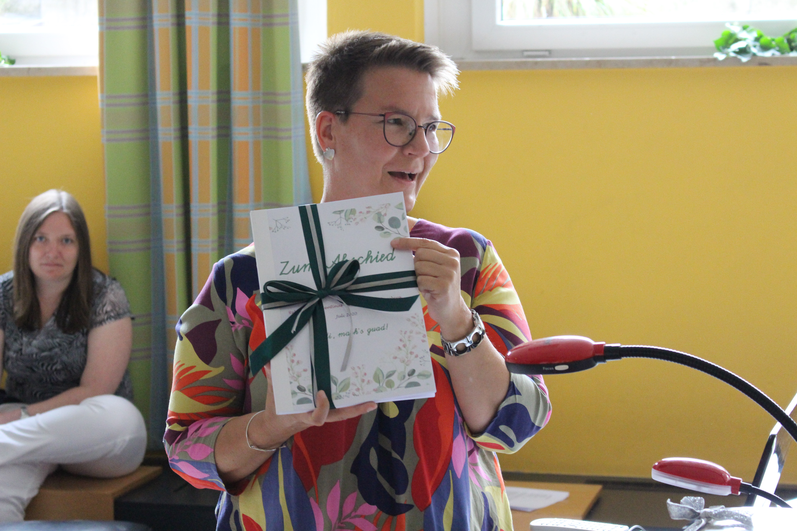 Natürlich wurde der Rektorin auch auf den privaten Zahn gefühlt: Ob Stöckelschuhe oder Kostüme, ob Reisefieber oder die bevorzugte Parfümmarke – ihren Kollegen ist nichts entgangen. Konrektorin Breu zeichnete das Bild einer – so wörtlich – „Herzblutlehrerin: Ob Lesenacht, Schulfest oder Sportfest – nur Unterricht reicht Dir nicht.“ Sie sei ein Vorbild, nicht allein für ihre Schüler. Kroiß-Hillmann ließ das so nicht allein stehen: „Ich hatte immer Glück mit meinen Stellvertretern.“