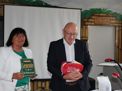 Seitens der Stadt Abensberg überbrachte 2. Bürgermeister Dr. Bernhard Resch den Dank für ihre Leistung und sagte, sie sei „eine treibende Kraft in Abensbergs Schullandschaft“. Und Dr. Resch verlas die Glückwünsche des 1. Bürgermeisters Dr. Uwe Brandl: „Deine wertvolle Arbeit hat unsere Grundschule über viele Jahre hinweg bereichert. (...) Ich wünsche Dir eine erfüllte, sowohl spannende als auch entspannende Zeit bei guter Gesundheit!"