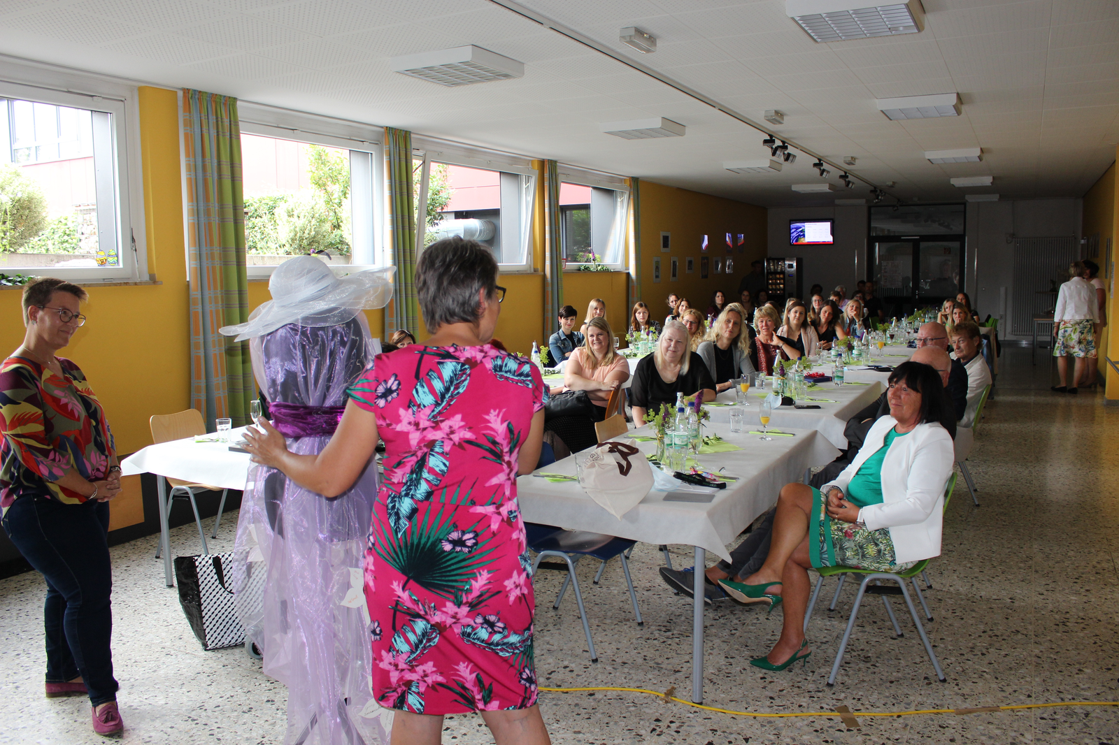 Die Mensa der benachbarten Mittelschule war gerade noch groß genug für die Kolleginnen und Kollegen und für die Gäste aus Politik und Schulamt: Nach 42 Jahren als Vollzeit-Lehrerin wurde die Rektorin der Aventinus Grundschule Abensberg, Hermine Kroiß-Hillmann, am vergangenen Freitag (17. Juli) in den Ruhestand verabschiedet. Die „waschechte Abensbergerin“, so ihre Konrektorin Bianka Breu, hat am selben Ort ihre schulische Laufbahn gestartet – als Grundschülerin der damaligen Klosterschule! 59 Jahre später nahm Hermine Kroiß-Hillmann nun Abschied, und angesichts der liebenswerten Worte der Kollegen, einer beschwingten, theatralisch-humorigen Aufführung rund um ihre Eigenschaften und Vorlieben und vieler Geschenke stockte ihr doch etwas der Atem: „Das ist ein schwerer Abschied“, gestand sie.