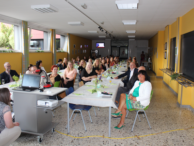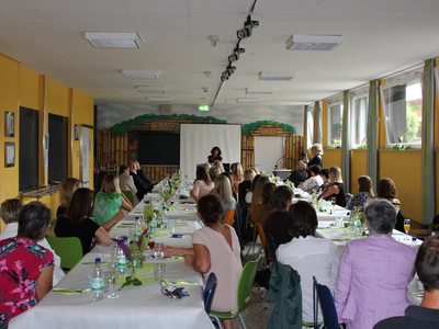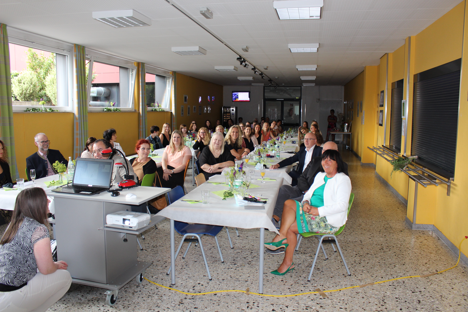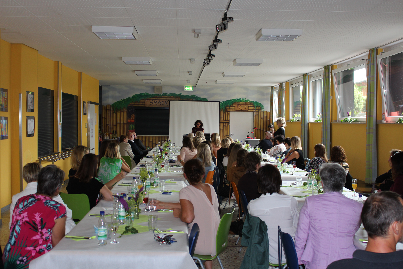 Schulamtsrätin Nicola Moritz-Holzapfel betonte ausdrücklich, wie unter Rektorin Kroiß-Hillmann anstehende Aufgaben stets im Team gelöst worden sind. Sie habe in der Grundschule Offenstetten das Ganztagsangebot eingeführt und mit nach Abensberg genommen; sie habe die Schule „mit Bravour geleitet.“ Heinz Wagner, heute BLLV-Seminarrektor, kam 2007 zu ihr nach Offenstetten und erinnerte sich: „Nach der Neujahrsrede des Bürgermeisters hast Du ein Ganztagskonzept aus dem Hut gezaubert!“ Man bedenke, dass sie bis zur Rede nichts von derlei Überlegungen gewusst hätten. Wagner: „Das Konzept machte die Runde und wurde schließlich bayernweit vorgestellt.“ Wagner zeichnete – wie alle Redner – das Bild einer lebendigen Schule, in der viele Ideen für Leben sorgen. Und, wie sagte eine Lehrerin: „Die Kinder sind tatsächlich still, wenn Hermine was erklären will.“