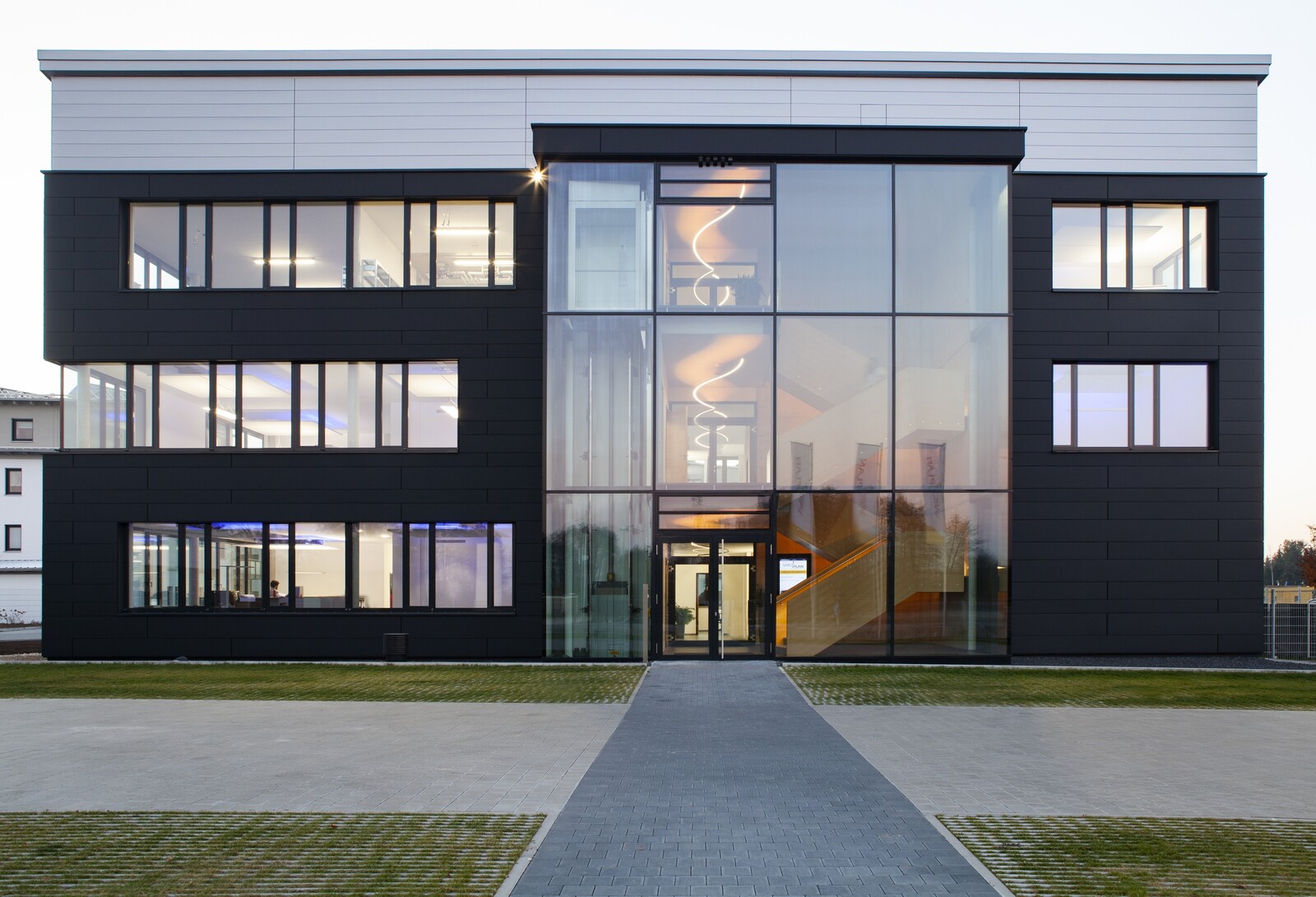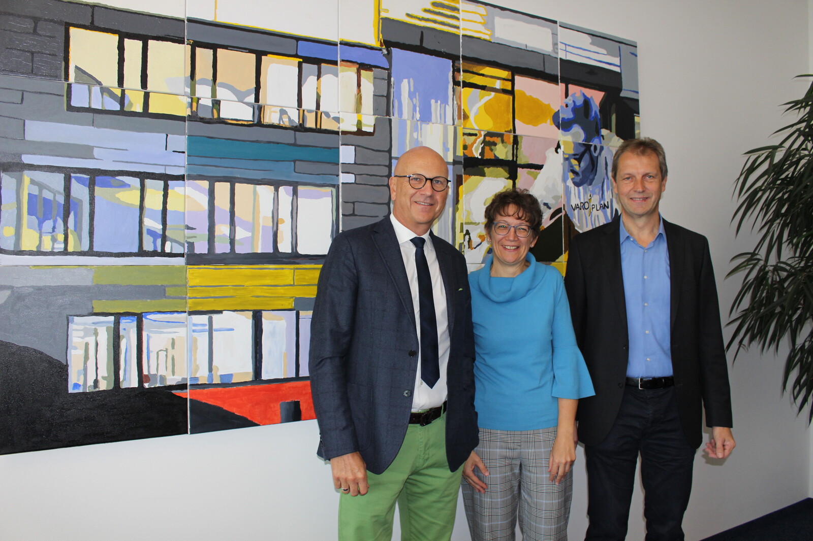 Die Arbeiten im neuen Gebäude an der Münchener Straße sind abgeschlossen, und wer die Varoplan GmbH nun an diesem Standort aufsucht, kommt aus dem Staunen nicht heraus – die Treppen im gläsernen Aufgang sind V-förmig angeordnet – V aroplan durch und durch. Beim Betreten werden die Gäste am Bildschirm begrüßt. Alles ist hochmodern, aber reduziert im Look. Über drei Geschoße sind Großraum- und Einzelbüros, Meeting- und Sitzungsräume untergebracht. Auf 1.000m² Bürofläche wurde für die 30 Mitarbeiter in Abensberg ein optimales Arbeitsumfeld geschaffen. Ein beeindruckendes Gebäude mit optimalem Ausblick – eine Traumlage für die Bauherren – konnte pünktlich zum 25-jährigen Bestehen des Ingenieurbüros fertig gestellt werden. Zum Firmenjubiläum gratulierte Abensbergs 1. Bürgermeister Dr. Uwe Brandl dem Ehepaar Claudia und Reinhard Zott.