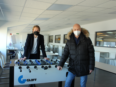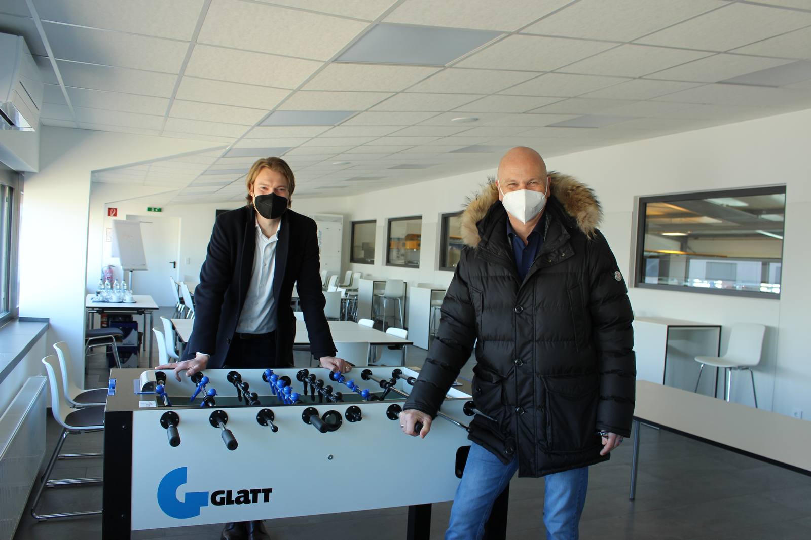 „Für mich ist das dann ein echter Ansporn“, freut sich Dreßen. Generell will er, das hat er schon zu Beginn seiner Tätigkeit als CEO bei Glatt formuliert, dass sich die Mitarbeiter wohl fühlen und optimal eingesetzt sind. „Das Soziale macht viel aus.“ Die große Kantine über der Ausbildungshalle ist natürlich für alle da, bietet sie doch Sitzplätze für 100 Leute. „Die wird gern genutzt, auch für kleinere Besprechungen. Man kommt hier gern zusammen.“ Auch Pläne, Roboter anzuschaffen, sprechen nicht gegen die Belegschaft, sondern soll ihr manche Arbeit erleichtern oder gar abnehmen. „Was ein Roboter kann, müssen wir nicht unbedingt selbst machen“, so Dreßen. Gerade in Zeiten, wo Mitarbeiter händeringend gesucht werden.