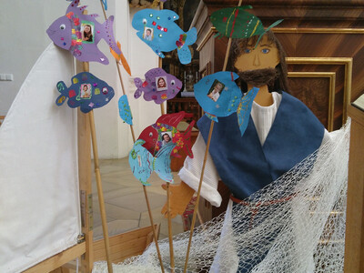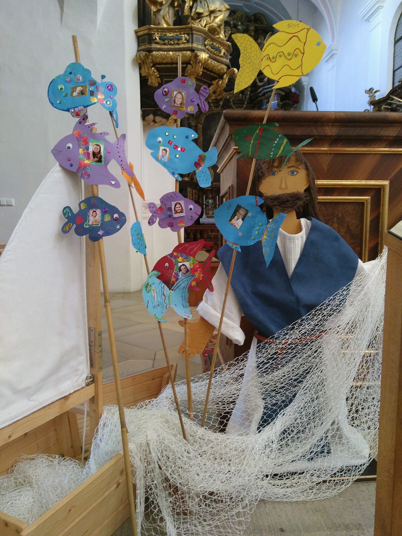 17 Tischmütter hatten die Kommunionkinder von Ende Januar an auf die Erstkommunion in kleinen Gruppen vorbereitet. Unter dem Motto „Ein Netz, das uns verbindet“ wurde in den Gruppentreffen darüber nachgedacht, welche Bedeutung der Ruf Jesu zur Nachfolge für jeden einzelnen Christen hat, dass seit der Taufe ein starkes Band besteht zu Jesus und diese Verbindung in der Kommunion noch einmal gestärkt werde.