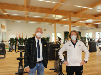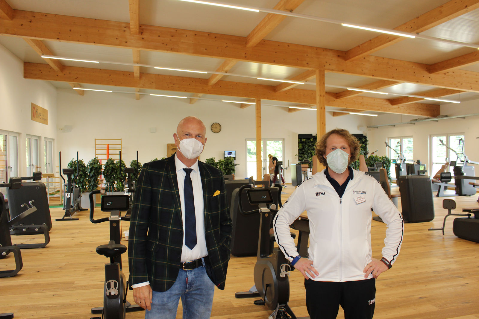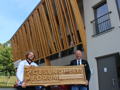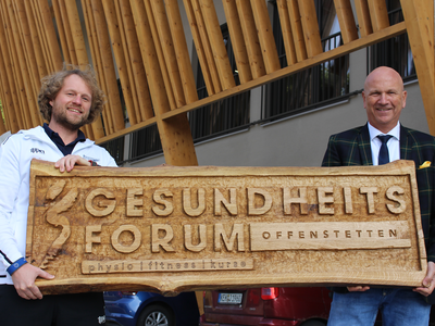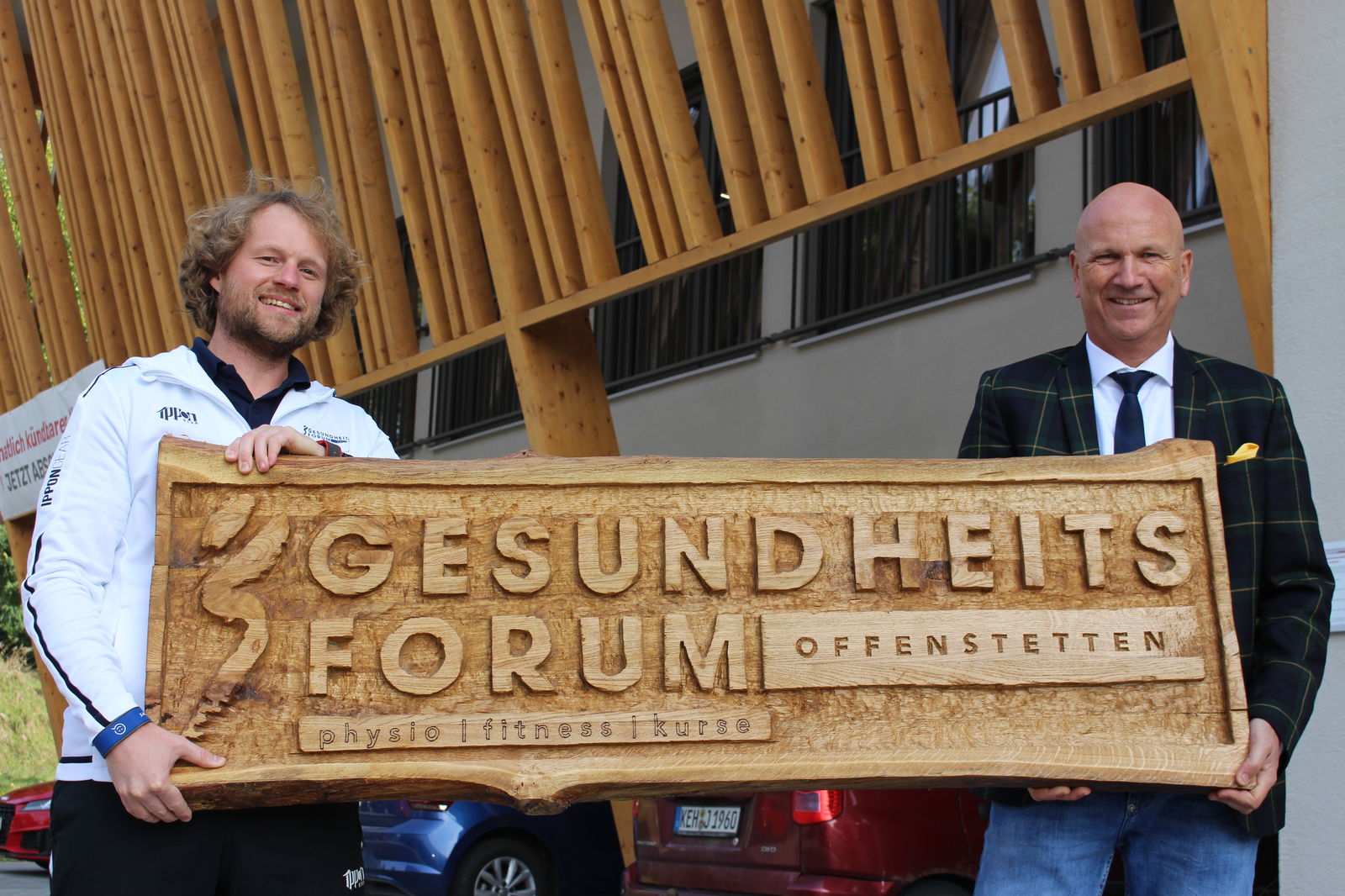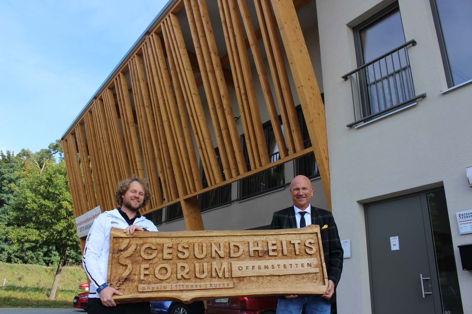 Abensbergs 1. Bürgermeister Dr. Uwe Brandl hat dem Physiotherapeut Stephan Meier zur Eröffnung des Gesundheitsforums Offenstetten gratuliert und dazu kleine Präsente der Stadt überbracht. Der durch Holzelemente äußerst markante Neubau in Offenstetten sollte bereits im Dezember 2020 eröffnet werden, dann aber machte die Pandemie dem Inhaber einen Strich durch die zeitliche Rechnung. Ende Mai 2021 konnte dann die Eröffnung erfolgen, jetzt folgte ein gemeinsamer Termin mit dem Bürgermeister. „Tolles Gebäude, und ein ganz besonderes Angebot“, so Dr. Brandl beim anschließenden Rundgang.