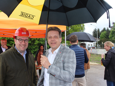 Für die Stadt Abensberg geht damit ein jahrelanger Prozess in die Schlussrunde. Im stetig anwachsenden Stadtteil Offenstetten wünschen sich Bürgerinnen und Bürger seit vielen Jahren einen Supermarkt. Dies war auch eines der Ergebnisse einer groß angelegten Bürgerbefragung. Die Stadt Abensberg hat lange nach Lösungen gesucht. Neben der Grundstücksuche war auch die Suche nach einem Investor langwierig, letztendlich aber erfolgreich: „Es ging sehr schnell, nachdem wir auf das Bauunternehmen Kutter gestoßen sind“, so Abensbergs 1. Bürgermeister Dr. Uwe Brandl in seinem Grußwort. Als Grundstück habe sich das Gelände an der Kreittmayrstraße als passend für das Vorhaben erwiesen – allerdings mit dem Manko, dass der Bolzplatz dann woanders entstehen müsse. Dieser ist zwischenzeitlich in der Steinbruchstraße entstanden. BM Dr. Brandl dankte in diesem Zusammenhang 2. Bürgermeister Dr. Bernhard Resch, der sich für die Akzeptanz des Vorhabens stark gemacht hatte.