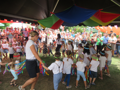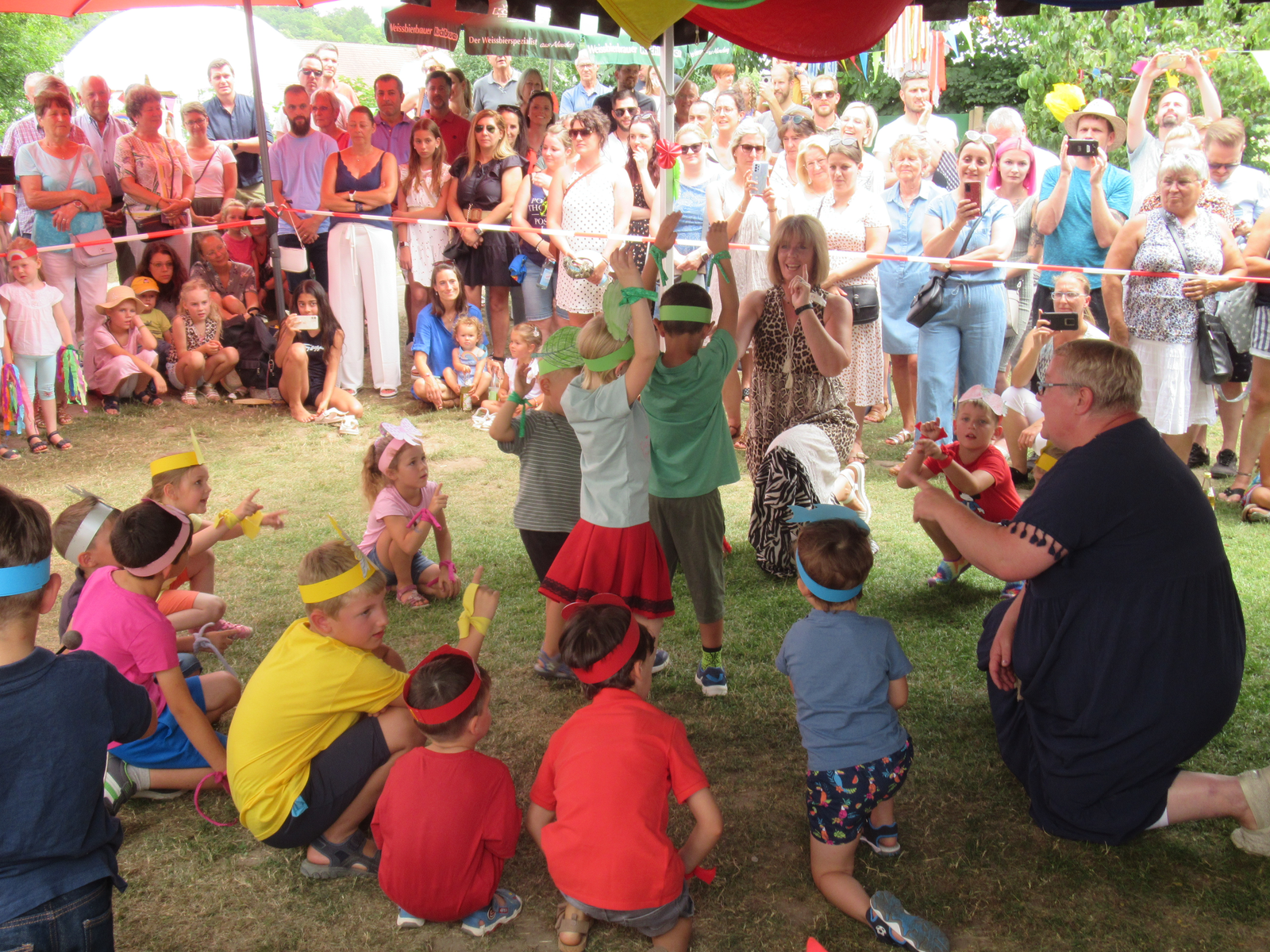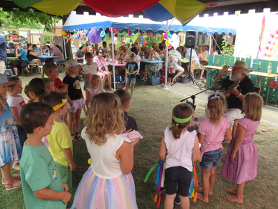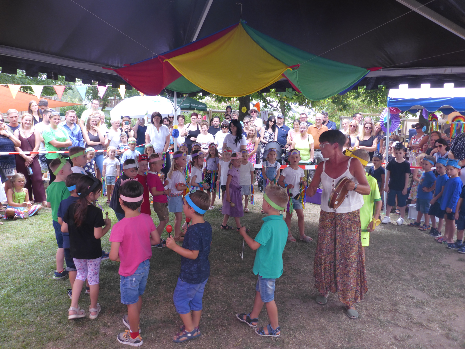 Zahlreiche, verschiedene Aufführung, darunter ein Farbentanz, das Lied "Unsere Welt die ist so farbenfroh" mit instrumentaler Begleitung, eine Vorstellung aller Gefühlsmonster zu dem Lied "Wenn du fröhlich bist..." sowie eine Vorstellung der Englisch Lehrerin Marian Bowen mit dem Lied "five little monkeys" und "wheels on the bus", machten die Veranstaltung zu einem rundum tollen Tag.