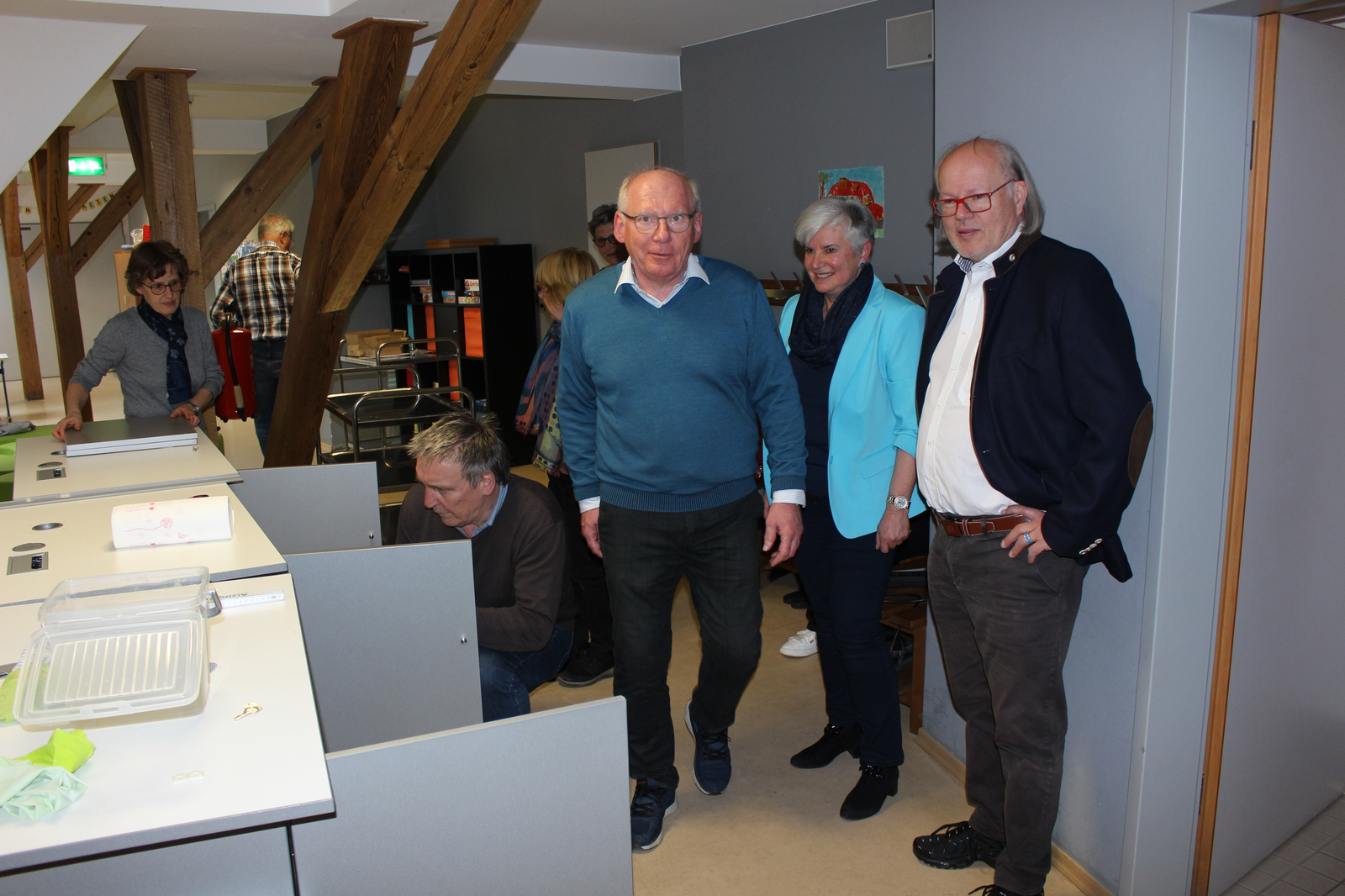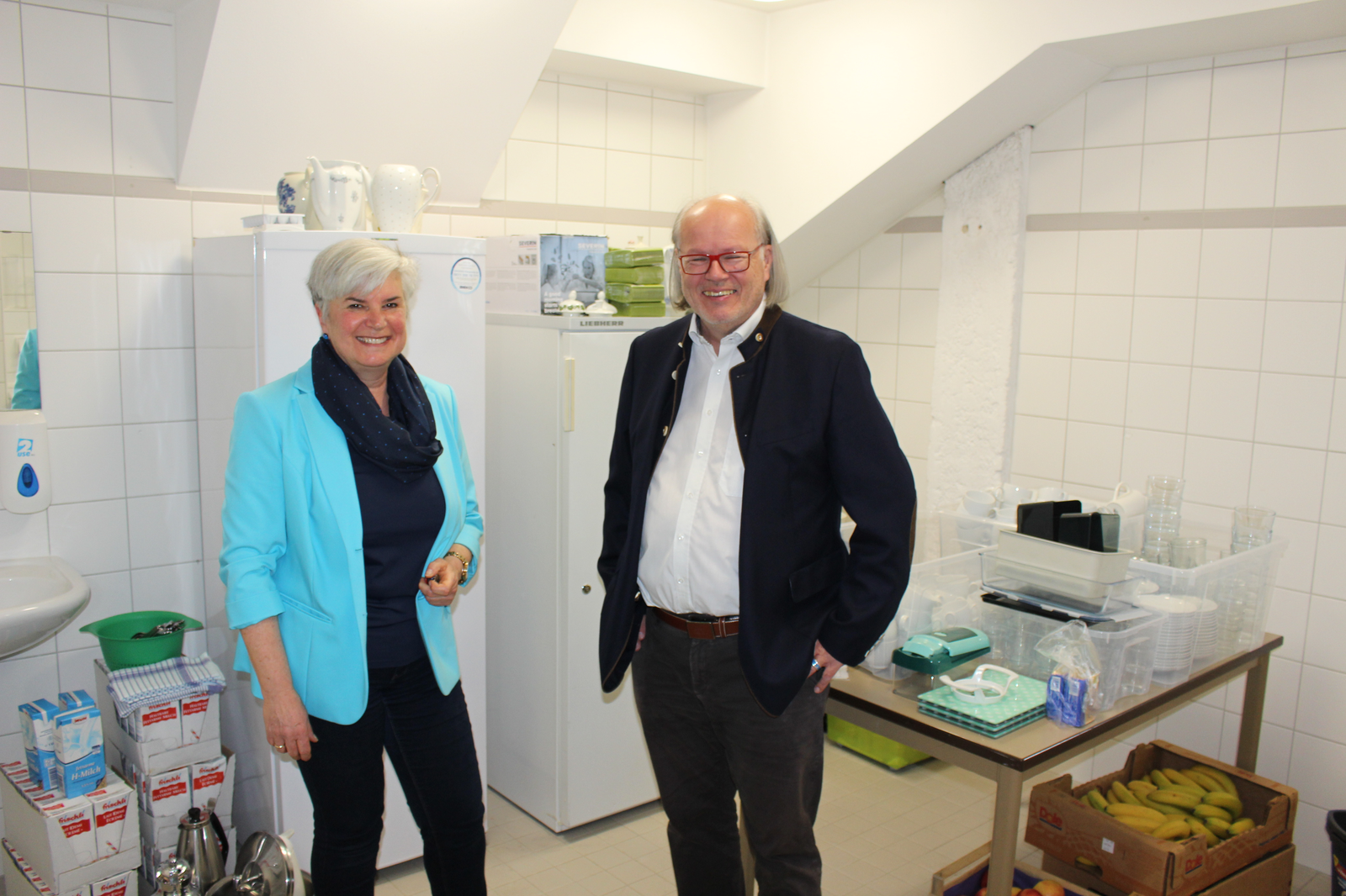 Im Bild oben die erste Großspende: Die Josef-Stanglmeier-Stiftung, vertreten durch den 1. Vorsitzenden Johannes Paintl, überreichte 3.000 Euro! Im Bild von links Elisabeth Güntner, Karl Prohaska, Evi Bartos, Ursula Prohaska, Margot Brunner, Anne-Katrin Streeck, Regina Heinze, Johannes Paintl, Felicitas Kirchmann, Klaus Brandhuber. In der Galerie nochmals das Hauptfoto und Schnappschüsse vom Besuch des Vorbereitungsraums.