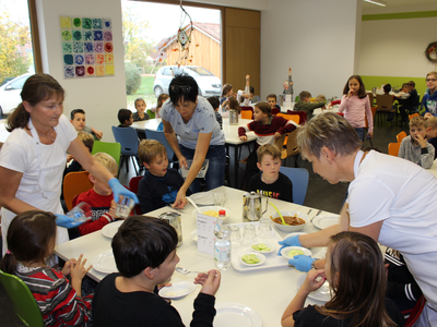 Rund 220 Schüler besuchen in der Grundschule Offenstetten zwölf Klassen; acht davon sind Ganztagsklassen, vier sind Regelklassen. Ganztagsklassen sind es nicht, „wenn wir nur einen Nachmittagsunterricht ranhängen“, so die Rektorin. An mindestens drei Tagen der Woche muss über den Vormittag ein Angebot exstieren, das mindestens sieben Zeitstunden umfasst. Eine Mittagspause mit Essensangebot muss dazu gehören. Ergänzende Unterrichtsangebote am Nachmittag müssen mit dem vormittäglichen Unterricht in Beziehung stehen. Hört sich - bis auf’s Essen - reichlich trocken an? In der Umsetzung in Offenstetten wird daraus ein sinnvolles und kindgerechtes Angebot. Das fängt dabei an, dass für die zusätzlichen Lehrerstunden keine externen Lehrer geholt werden, sondern die Arbeit vom bestehenden Team übernommen wird. Man kennt sich - und die Kinder eben auch.
